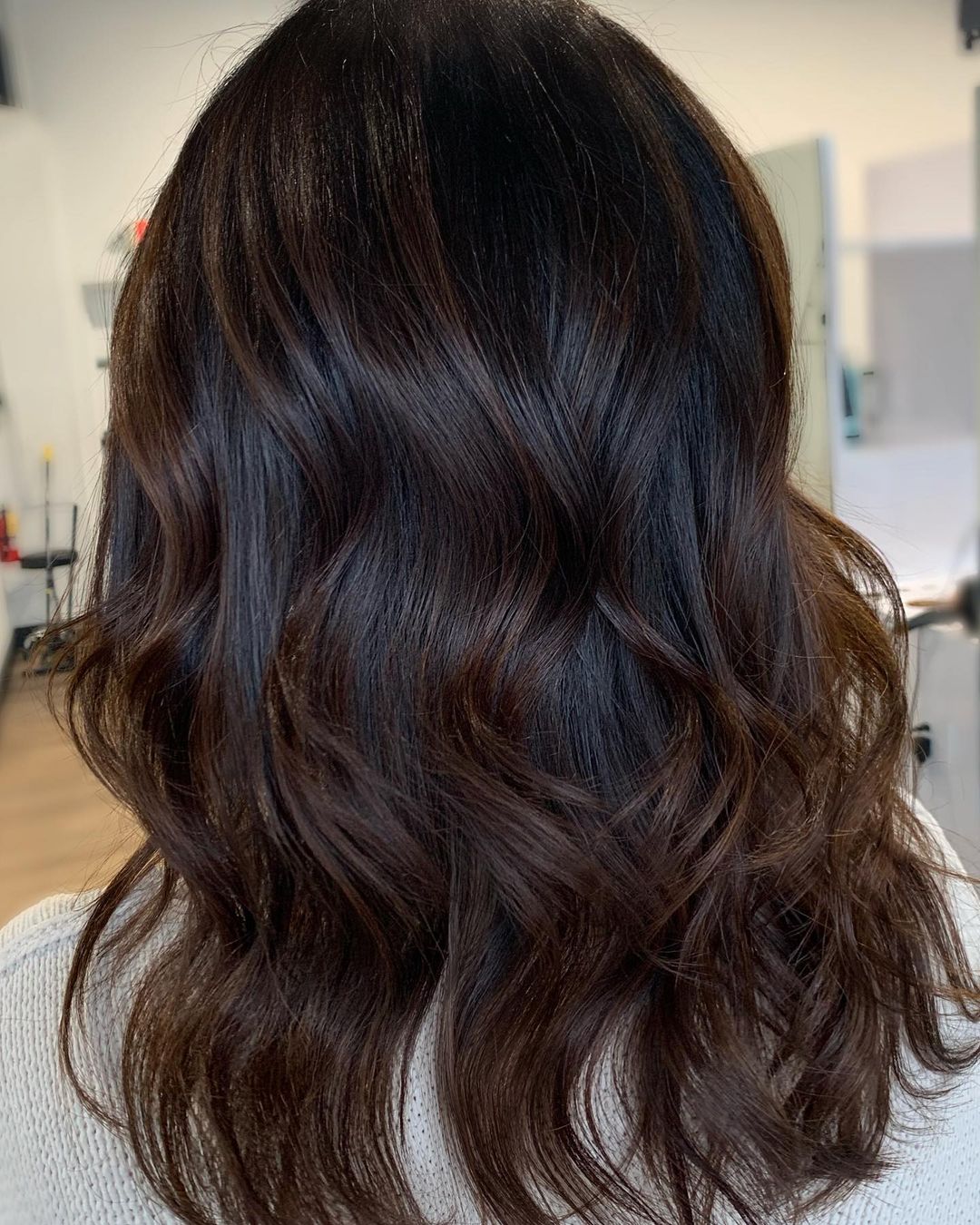 23. Wavy Blowout Dark Brown Hair Look