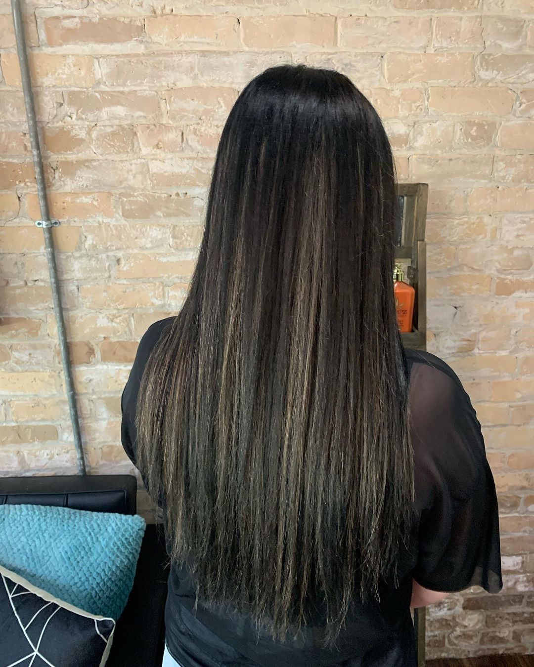 37. Long Black Silky Hair With Subtle Balayage Highlights