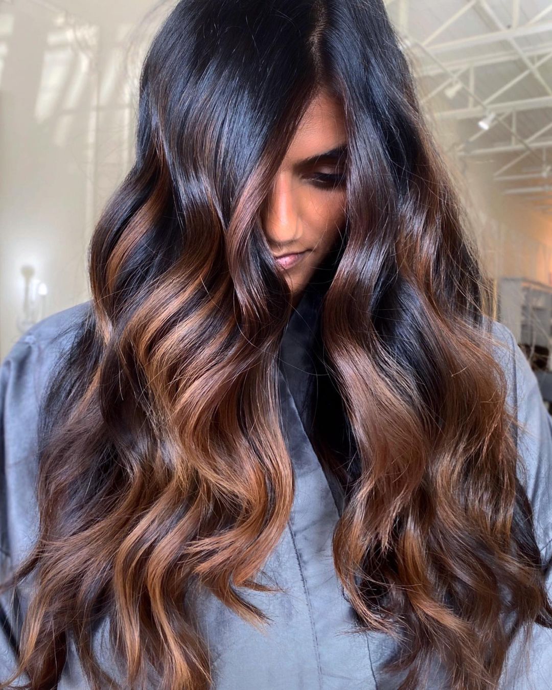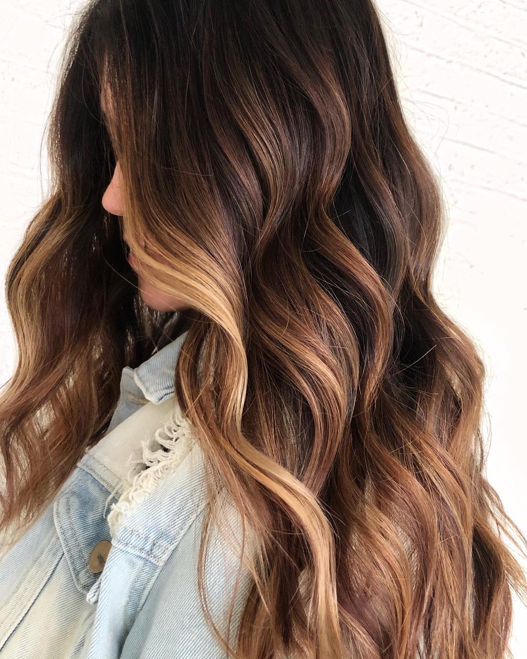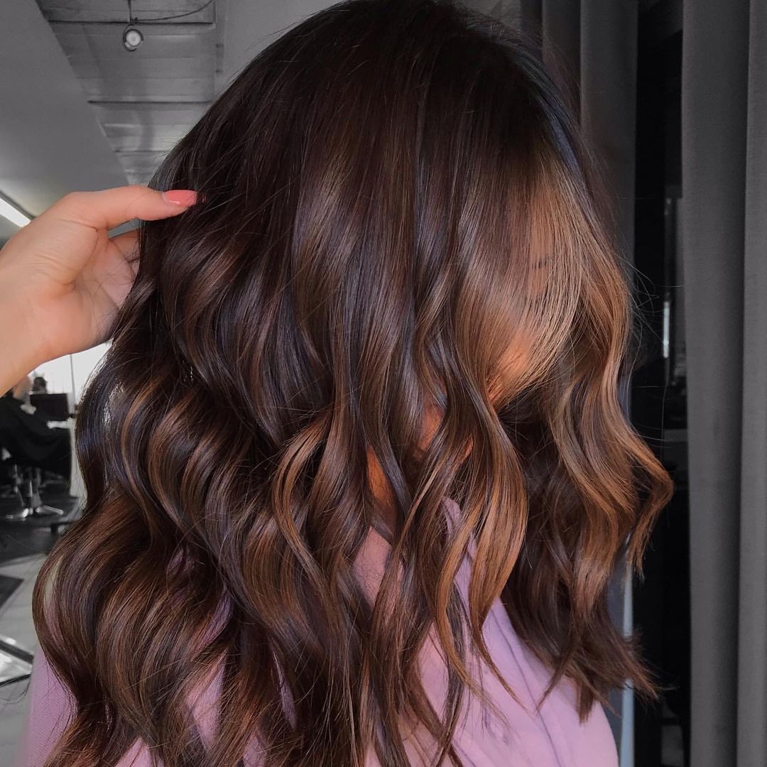 Lighter balayage highlights look incredible against dark chocolate hair. Before you decide to rock this look, just make sure your hair is feeling healthy and looking shiny for the best result!