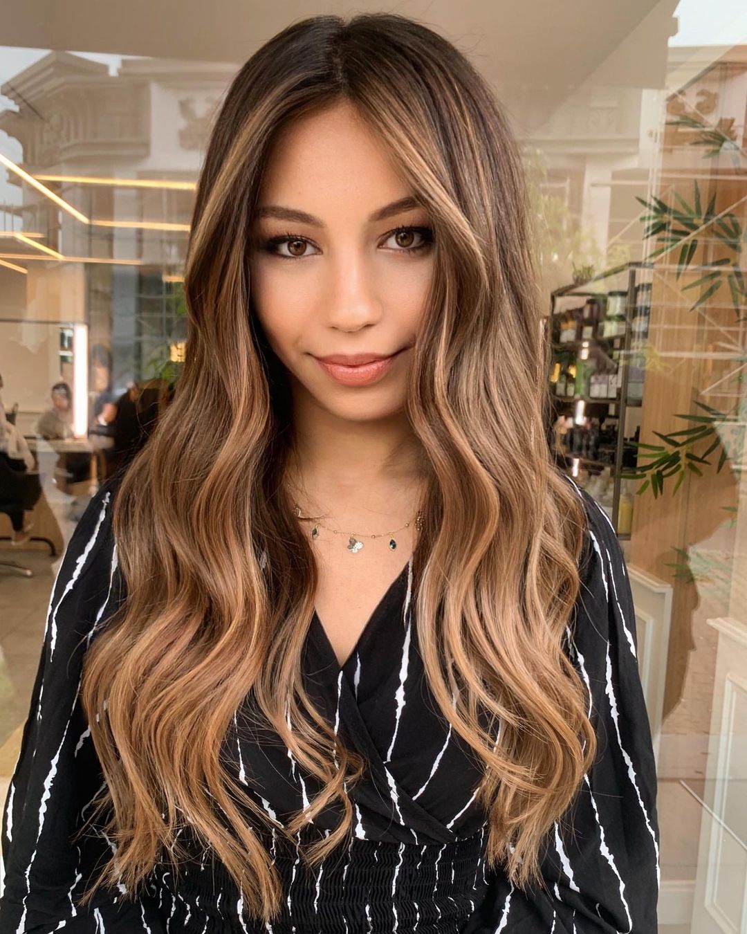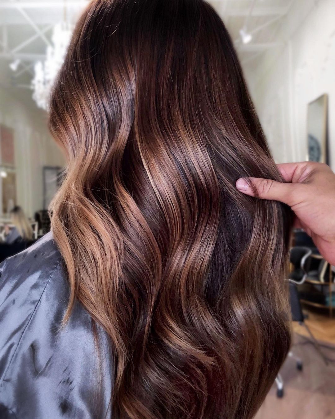 The combination of chocolate hair with caramel highlights is such a great choice for anyone who loves chic and sophisticated ideas. It’s a classic pairing that always looks good.