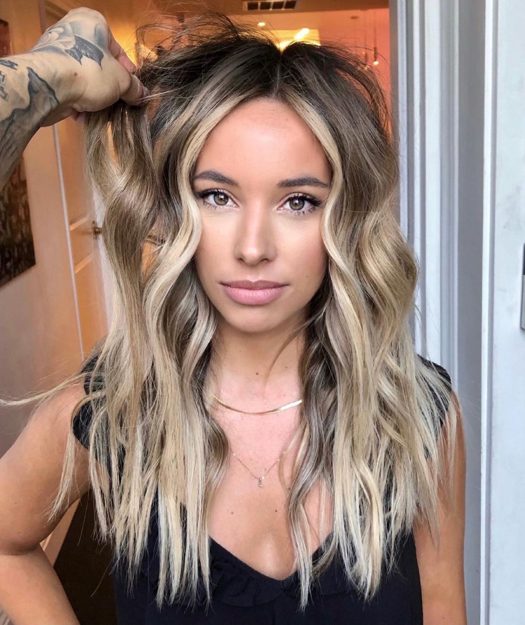 Using those frontal balayage highlights to frame your face is a total game-changer. This gorgeous style is so versatile—you can wear it for everyday errands or to more formal get-togethers.