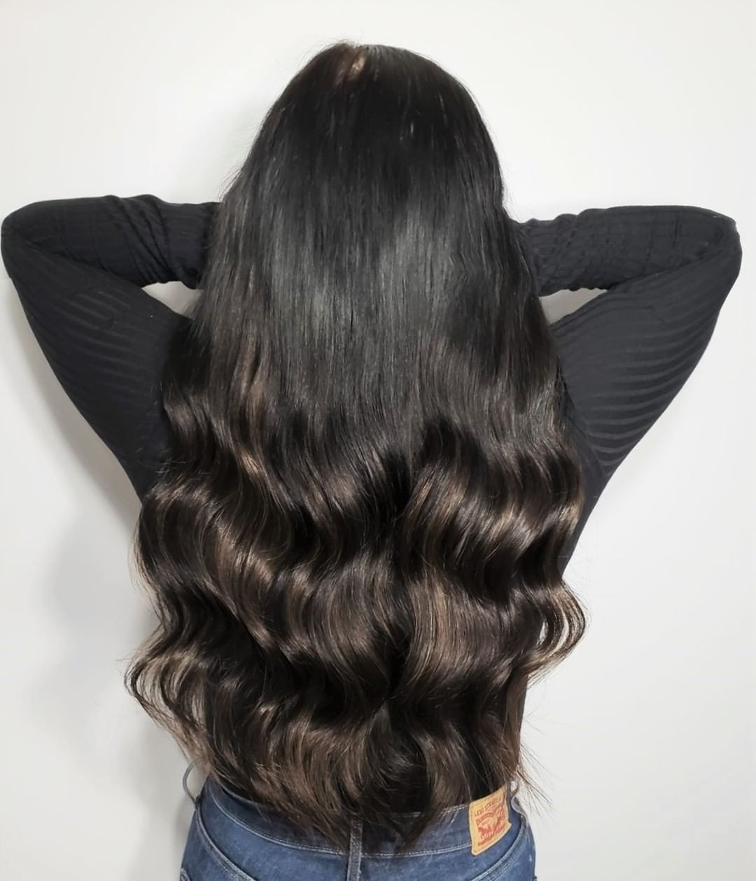 This long hairdo is so feminine and beautiful. You should know, however, that it’s a very high-maintenance style, so it’s best for someone who doesn’t mind the upkeep.
