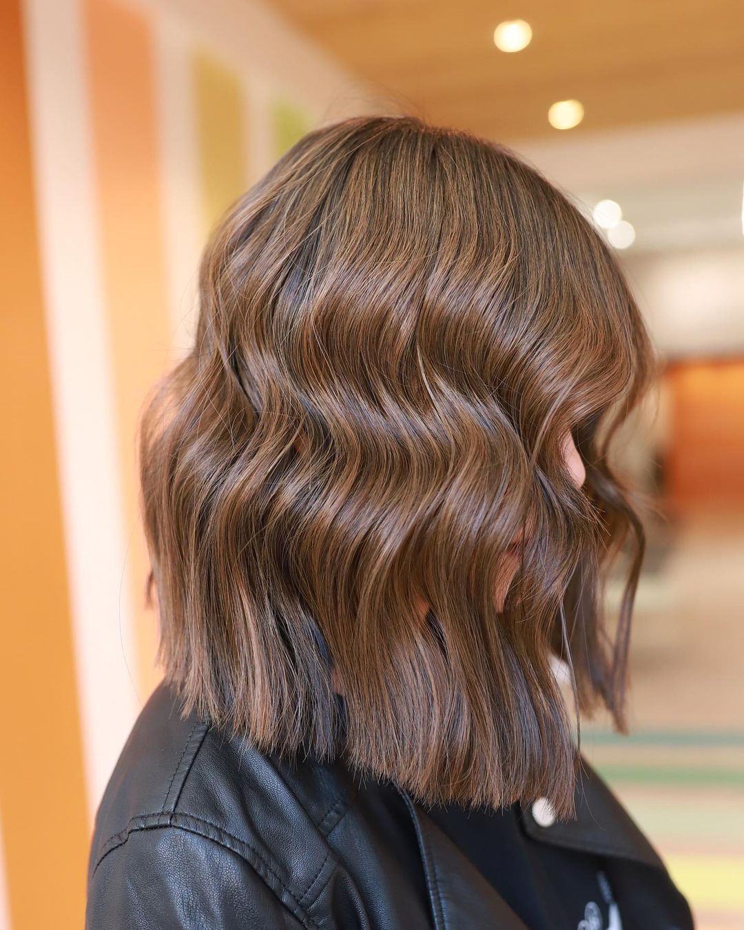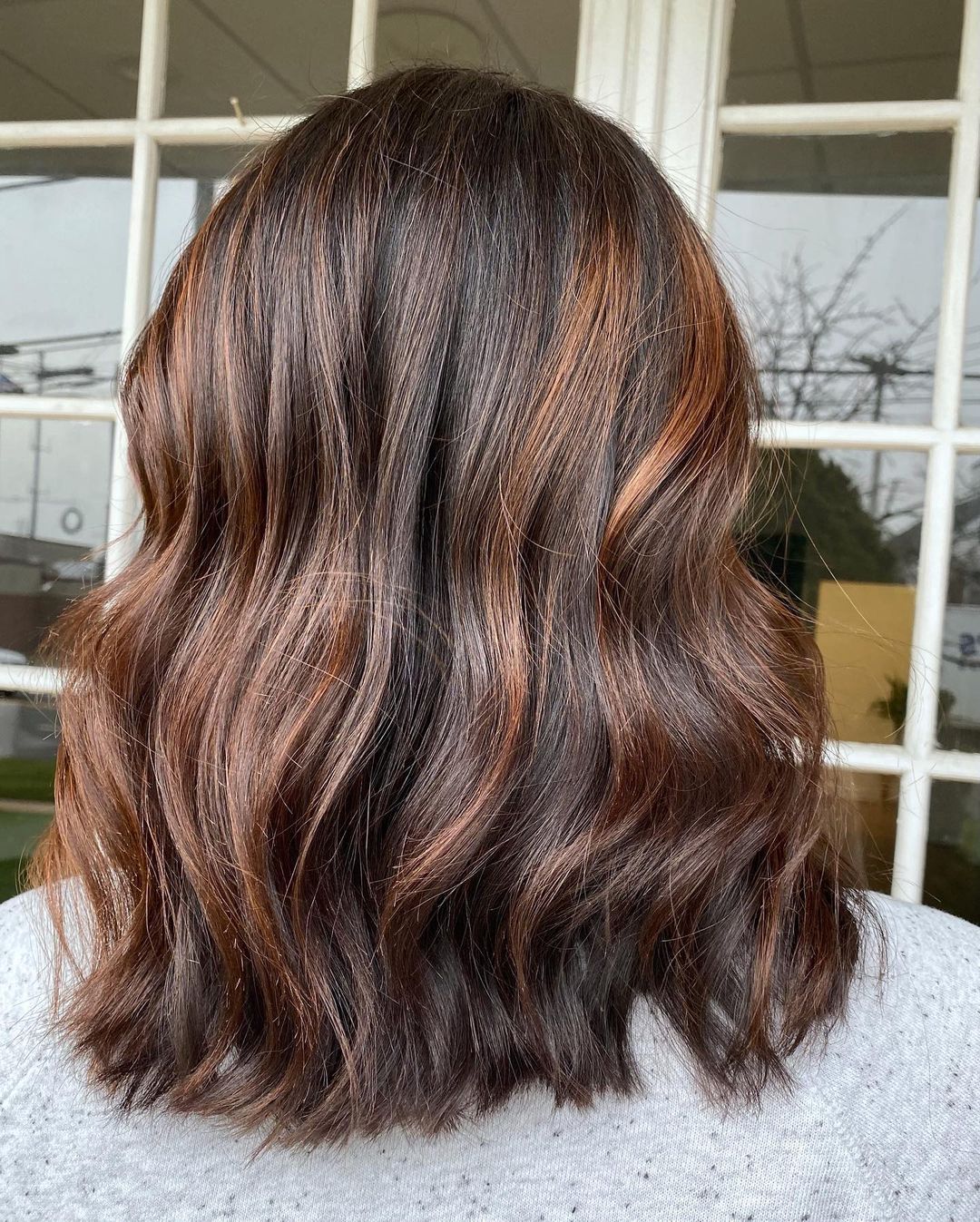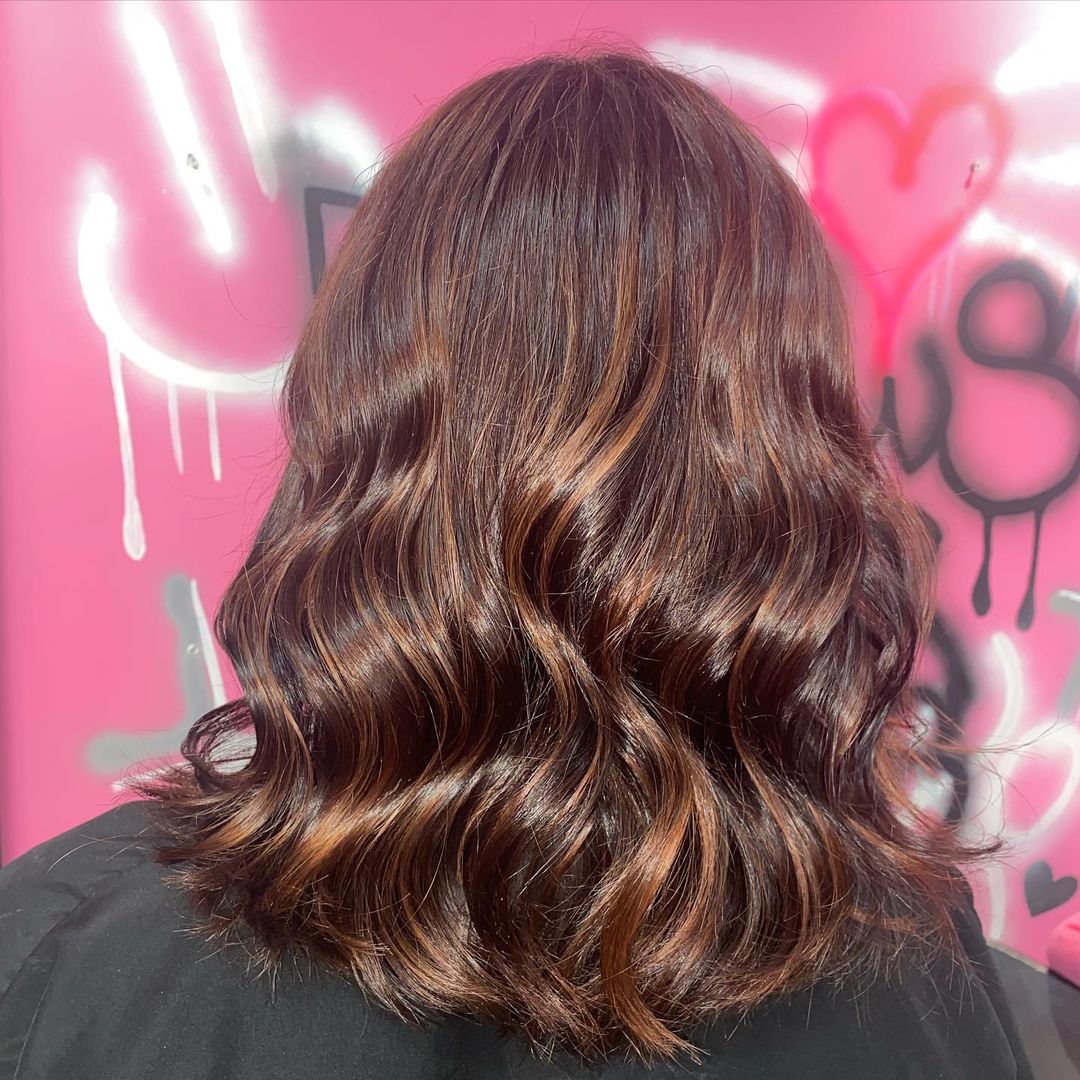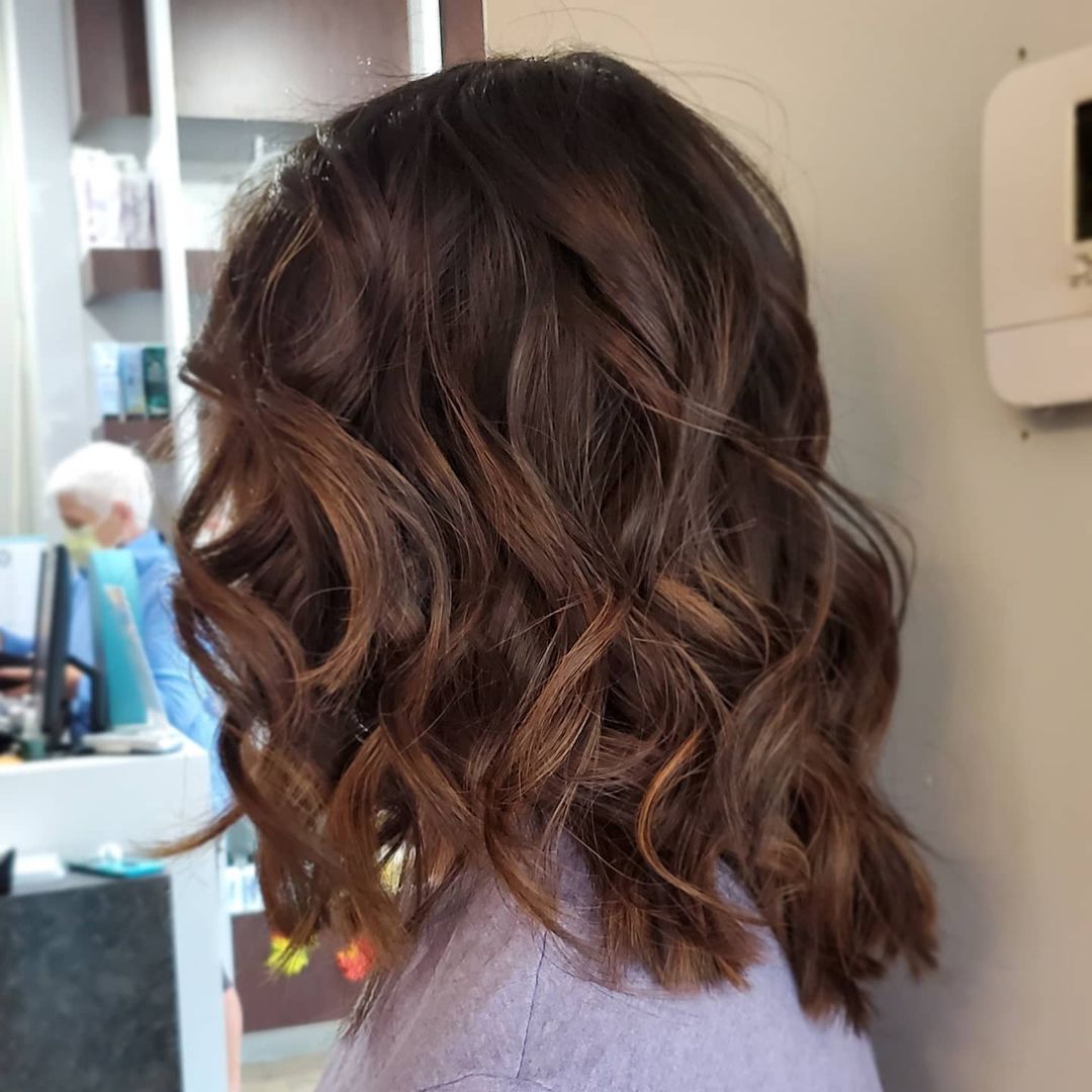 With this hair length, a chestnut base and curled ends will work so well together.