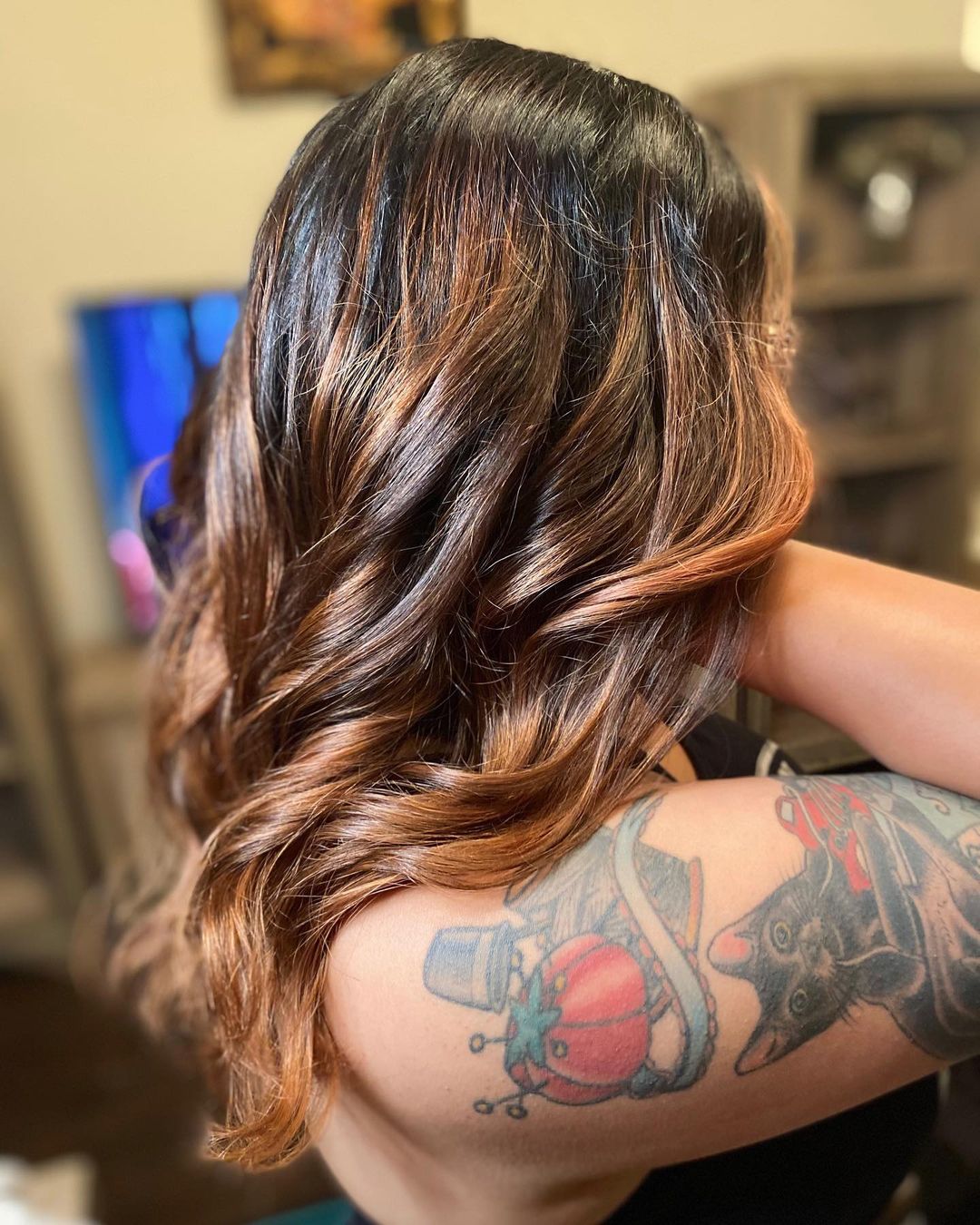 You can emphasize these warm highlights the best if your hair is naturally straight and flat.