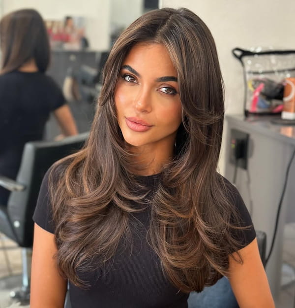 With layers that move freely and bangs that beautifully frame the face, you get a vibe that is both sophisticated and fresh.