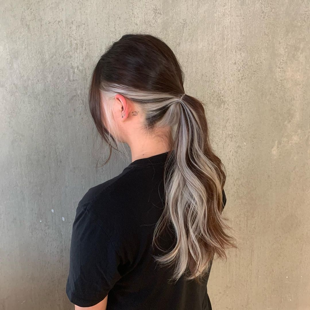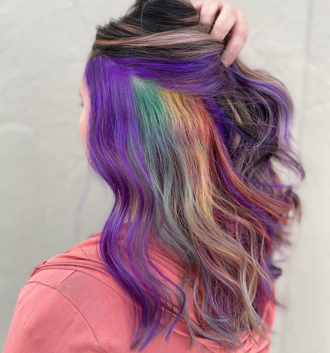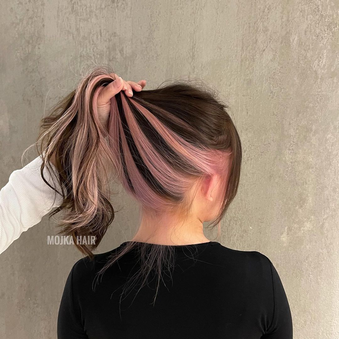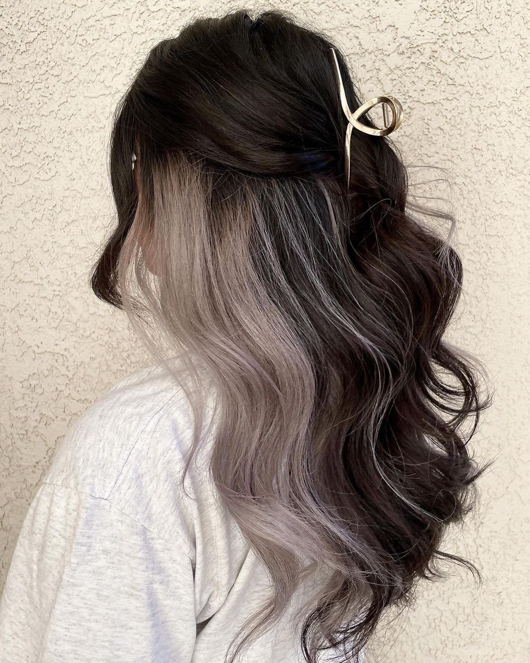 So, peekaboo highlights get their name for a super obvious reason—they give you that cute little ‘peekaboo’ moment! The color is applied underneath the top layer of your hair, which means they’re not super noticeable when your hair is down.