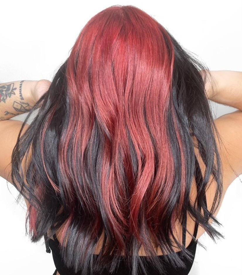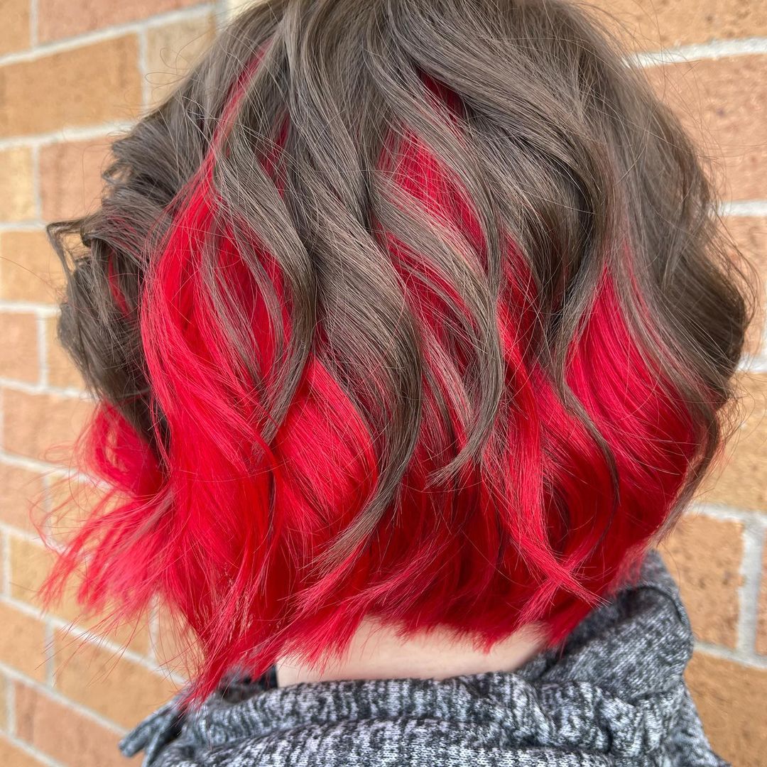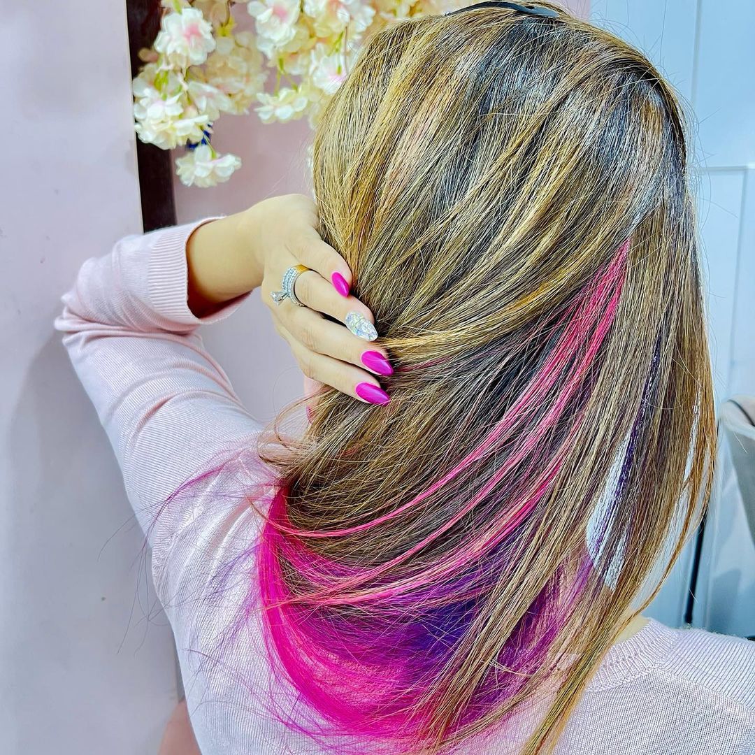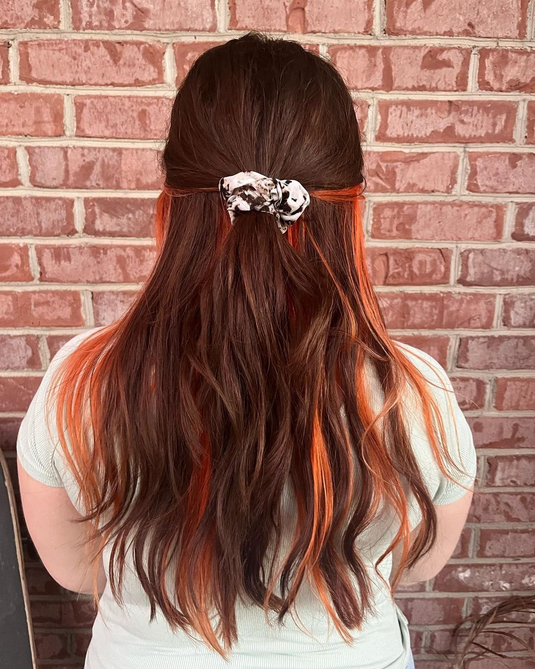 So, peekaboo highlights get their name for a super obvious reason—they give you that cute little ‘peekaboo’ moment! The color is applied underneath the top layer of your hair, which means they’re not super noticeable when your hair is down.