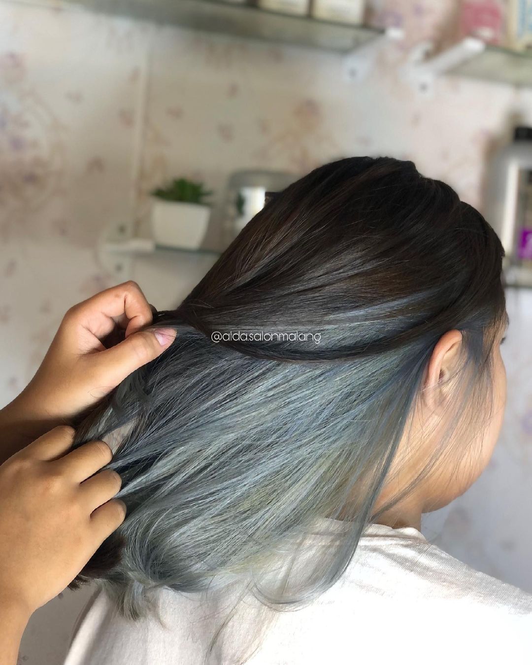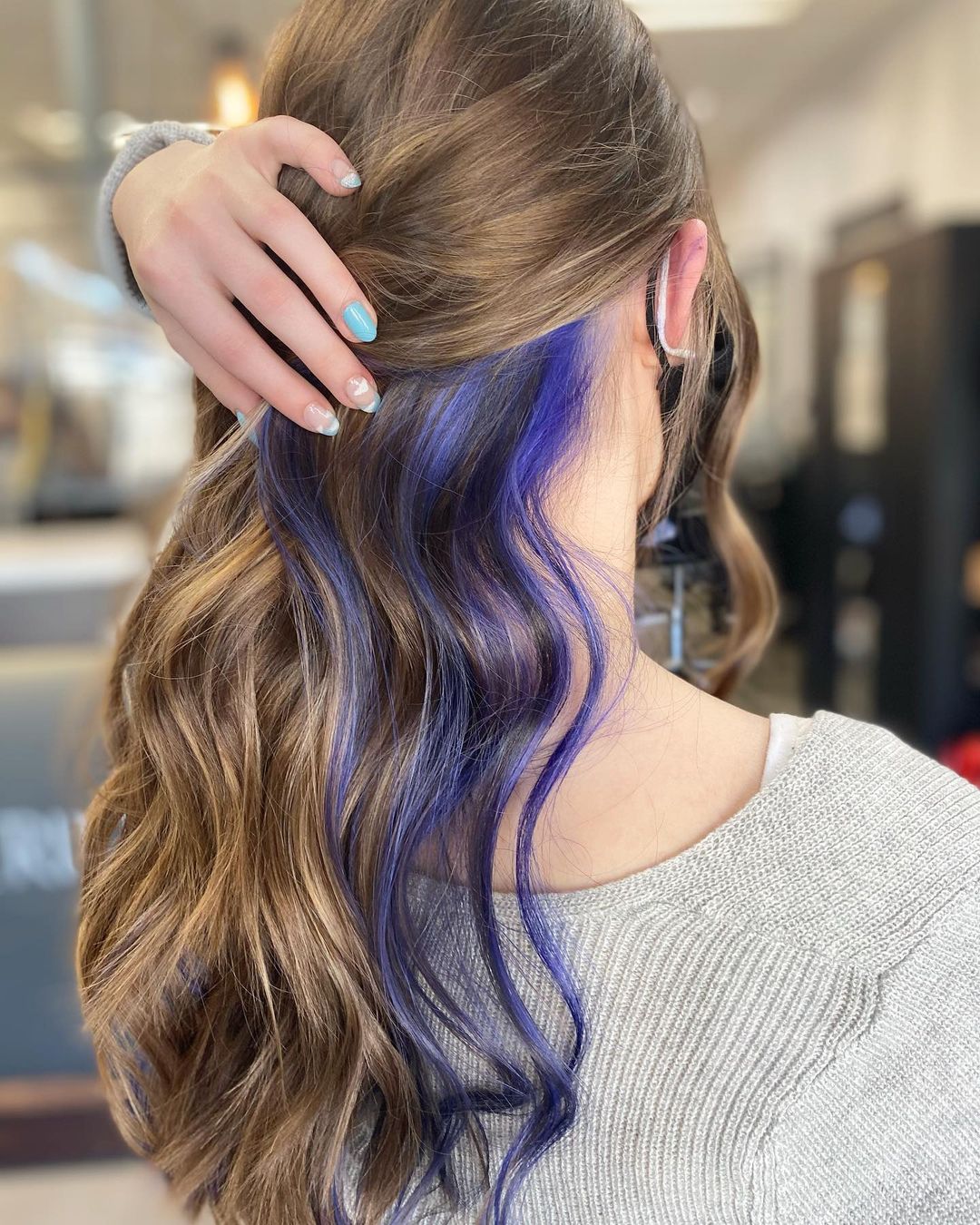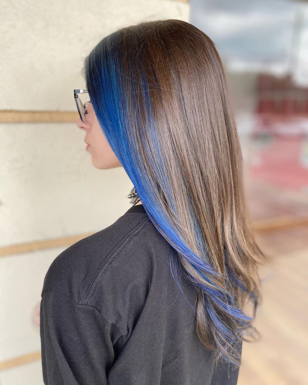 Add some dark blue highlights on top of your blonde or caramel hair for an insanely stylish result.