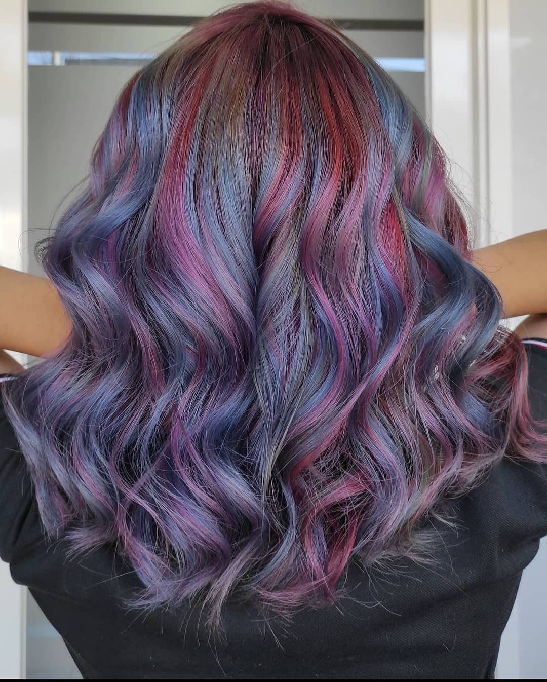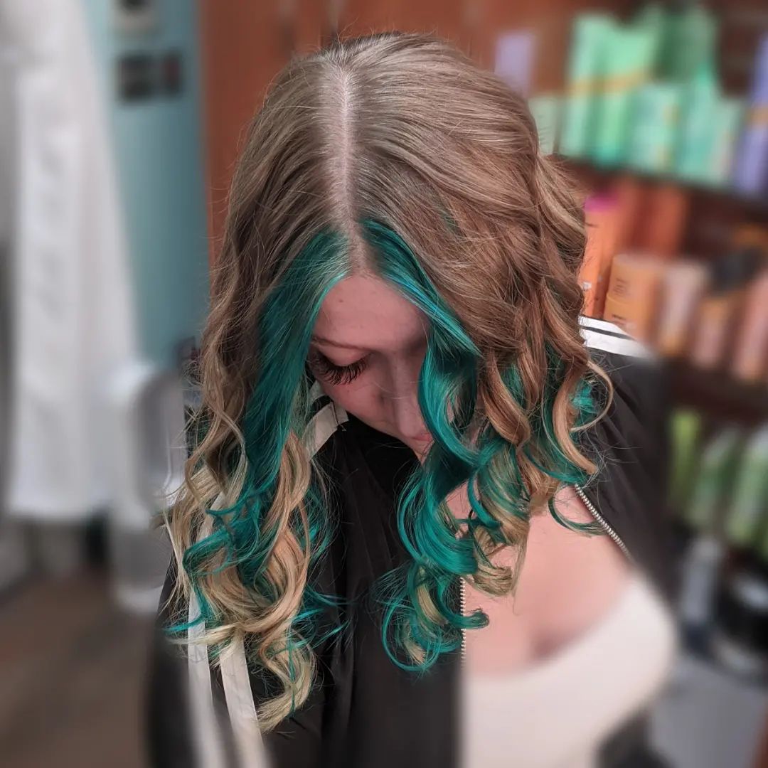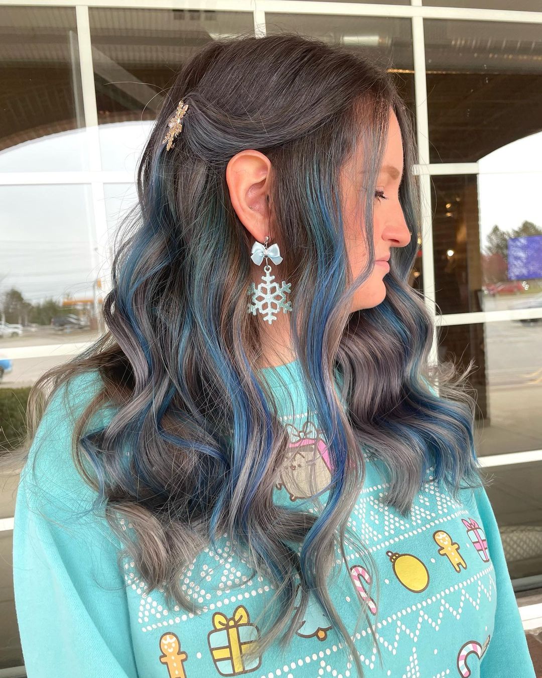33. Wavy Hairdo With Blue Peekaboo Highlights