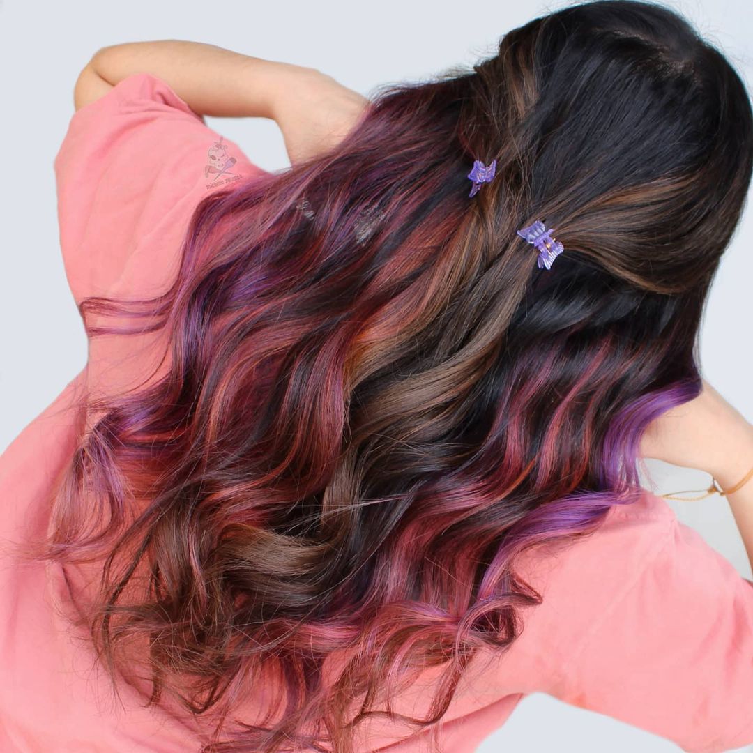 You can totally rock your natural hair color and just give it a little pop with some dark purple under lights.