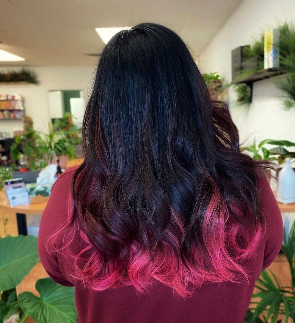 If your hair is already a dark pink shade, why not give it a little refresh with some light pink highlights?