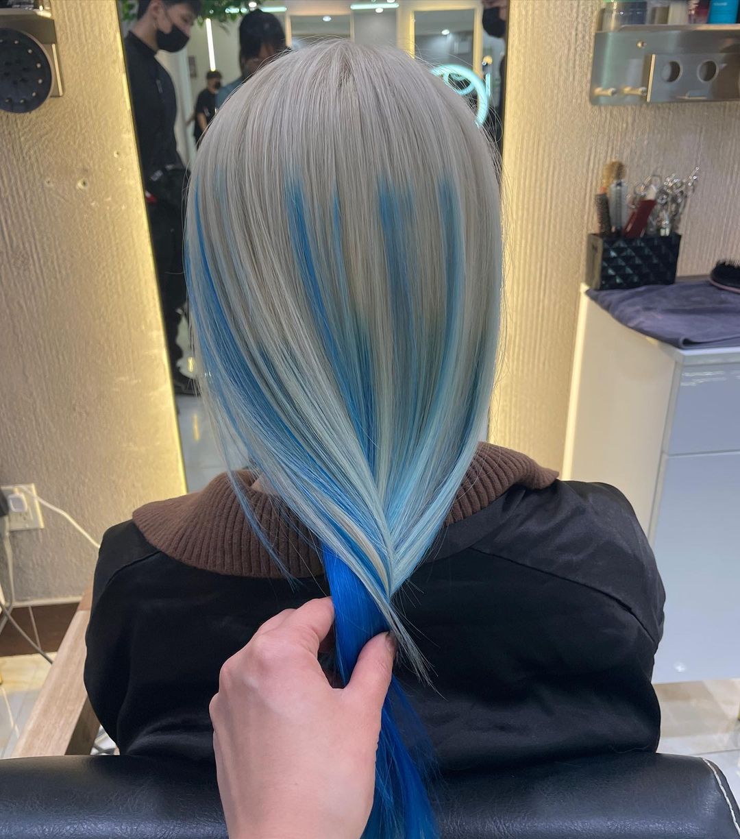 If your hair is on the lighter side, you should know that it makes a fantastic base for blue highlights.