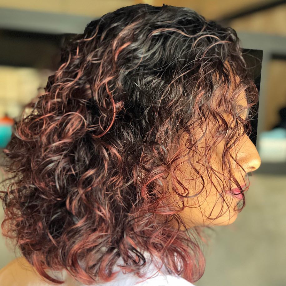 Let your amazing curls pop with a little bit of color and a shorter pixie cut. This is a look that’s guaranteed to get you a compliment or two.