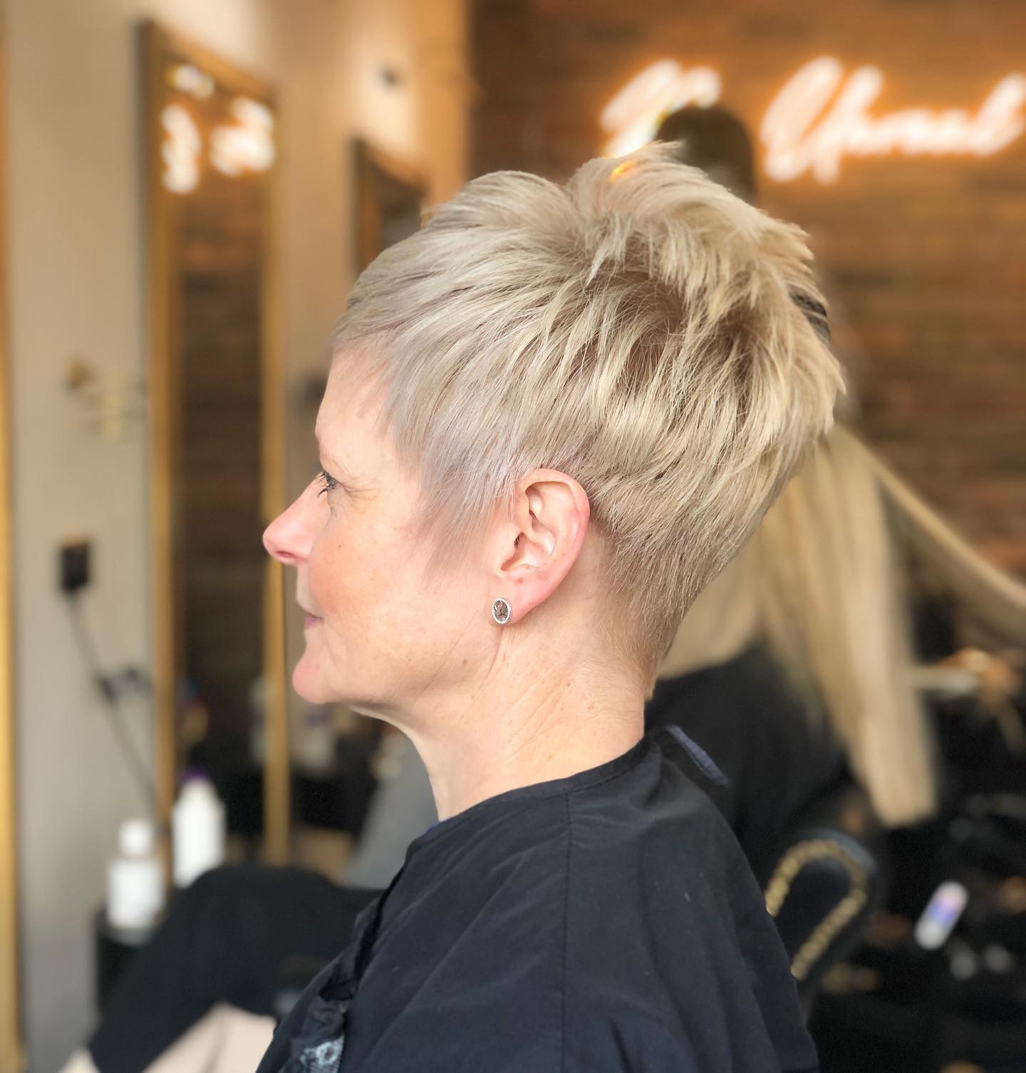 I love this because it proves that mature women can also rock the beauty of a blonde pixie moment!