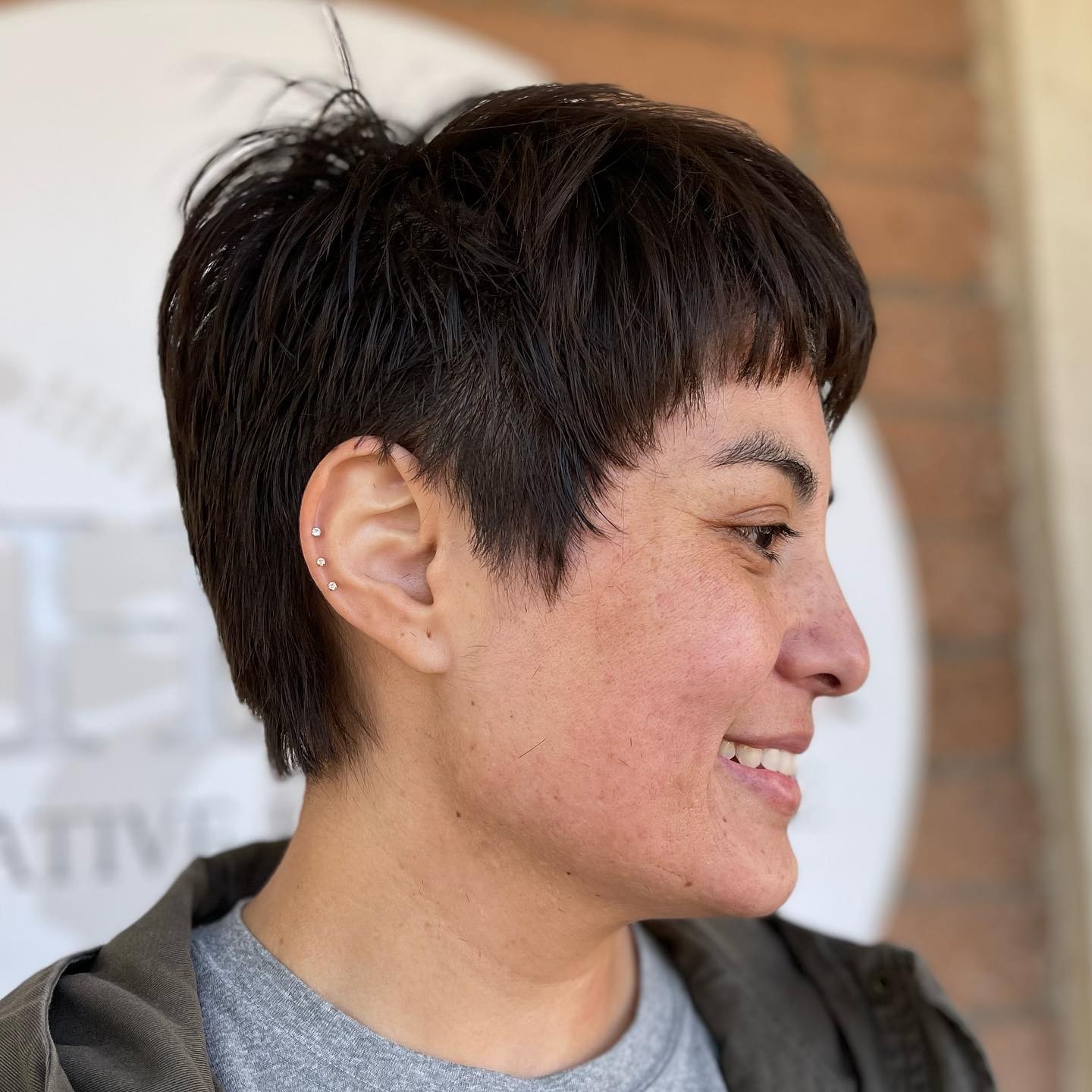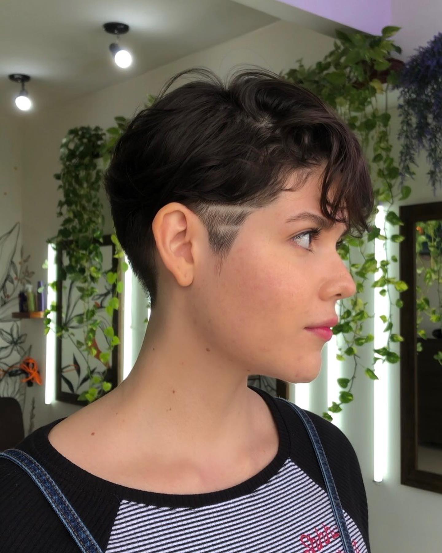 A cute dark brown pixie with a simple hair detail and an adorable cut. I mean, who wouldn’t like it?!