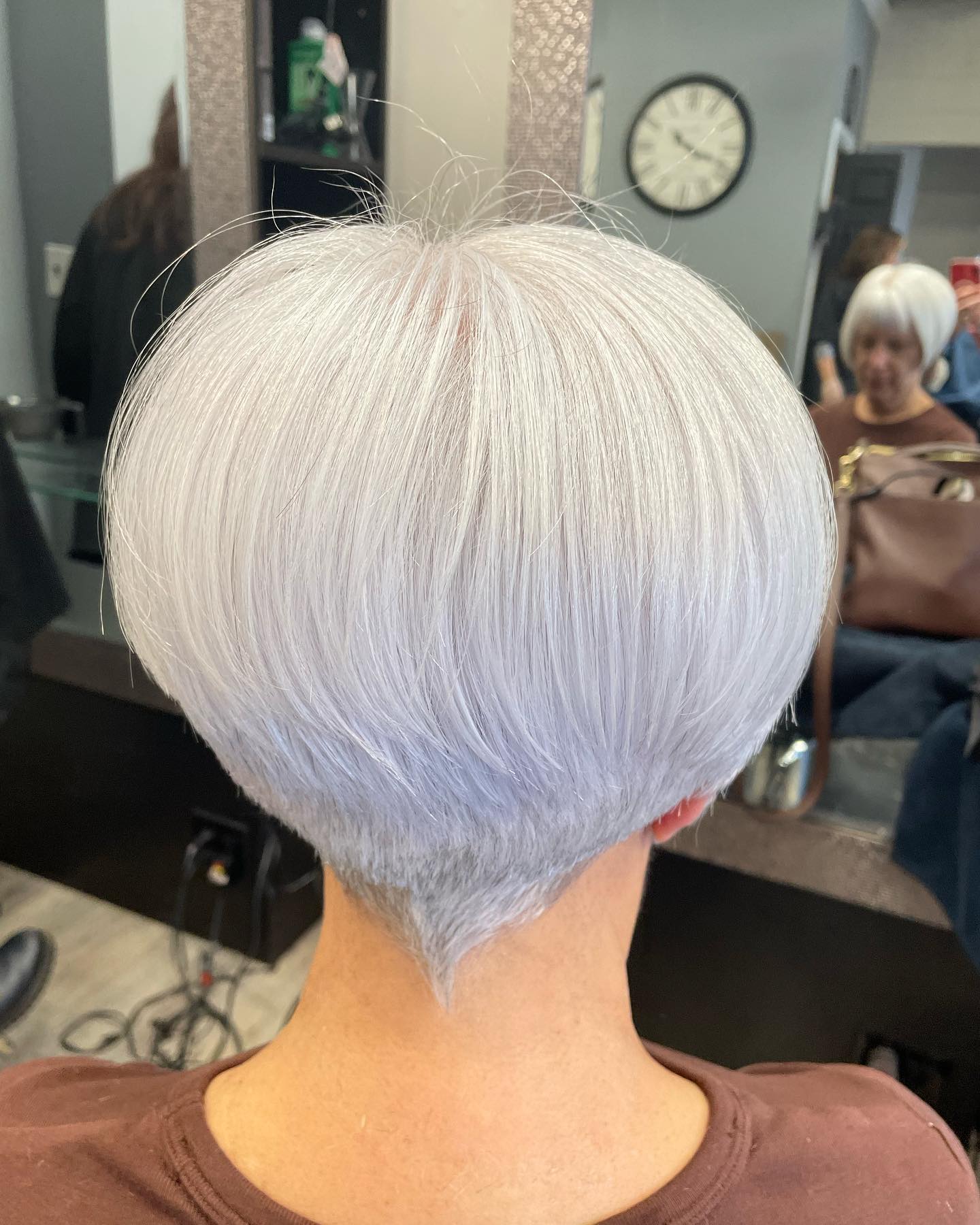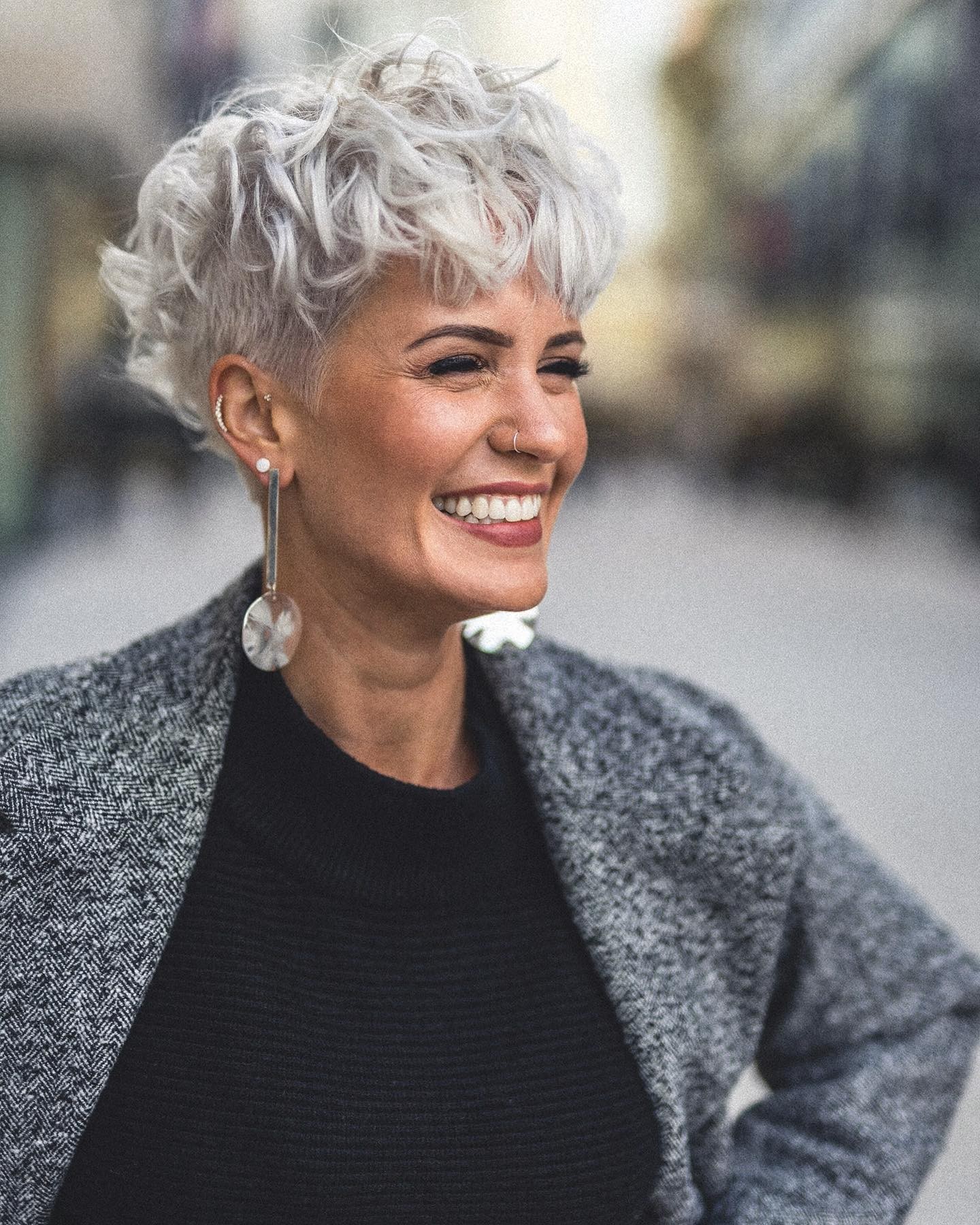 This icy silver pixie is all the proof you need that even mature women can try out bold and brave hairstyle ideas.