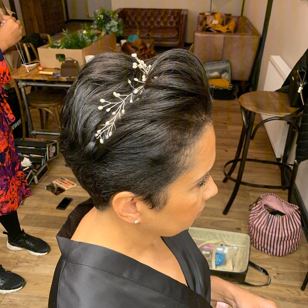 You can style your shorter pixie in your favorite way and then glam it up with a headband. The accessory adds the perfect finishing touch and makes the whole look feel so special.