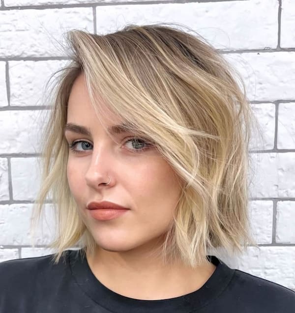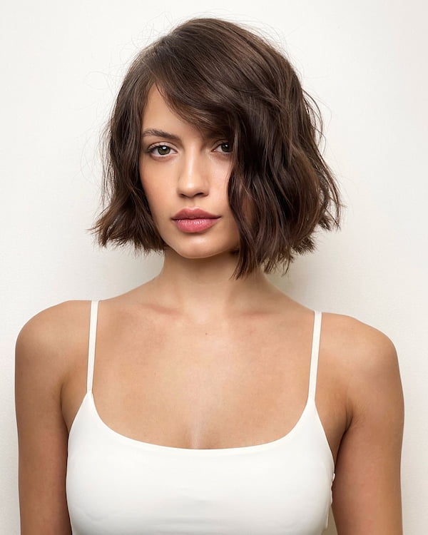 This side-parted wavy bob is a suitable option to explore as it creates texture and movement.