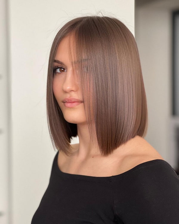 For ladies who love their forehead covered, this straight bob with blunt bangs delivers a sleek, structured look.