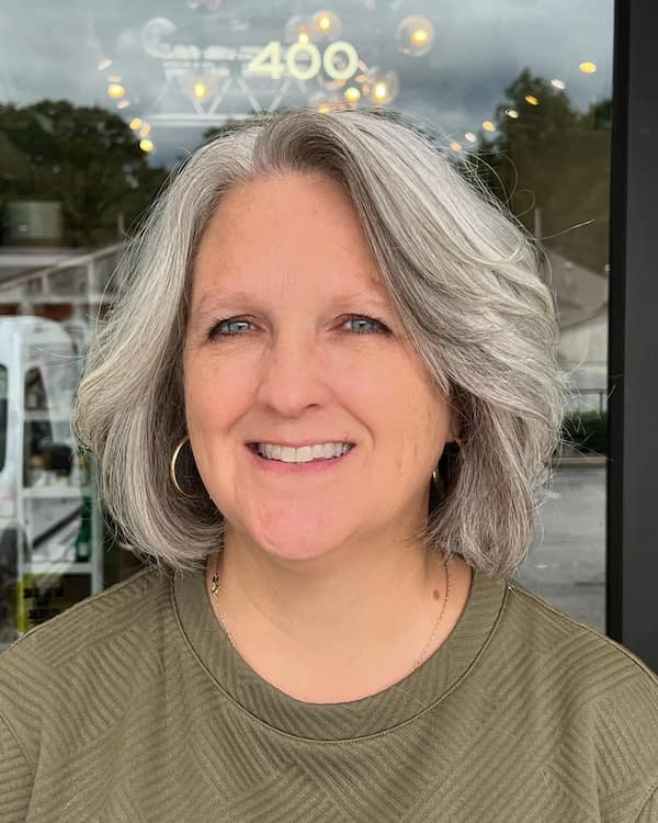 Ideal for women over 50, this gray textured bob adds depth and movement to fine, thin hair.