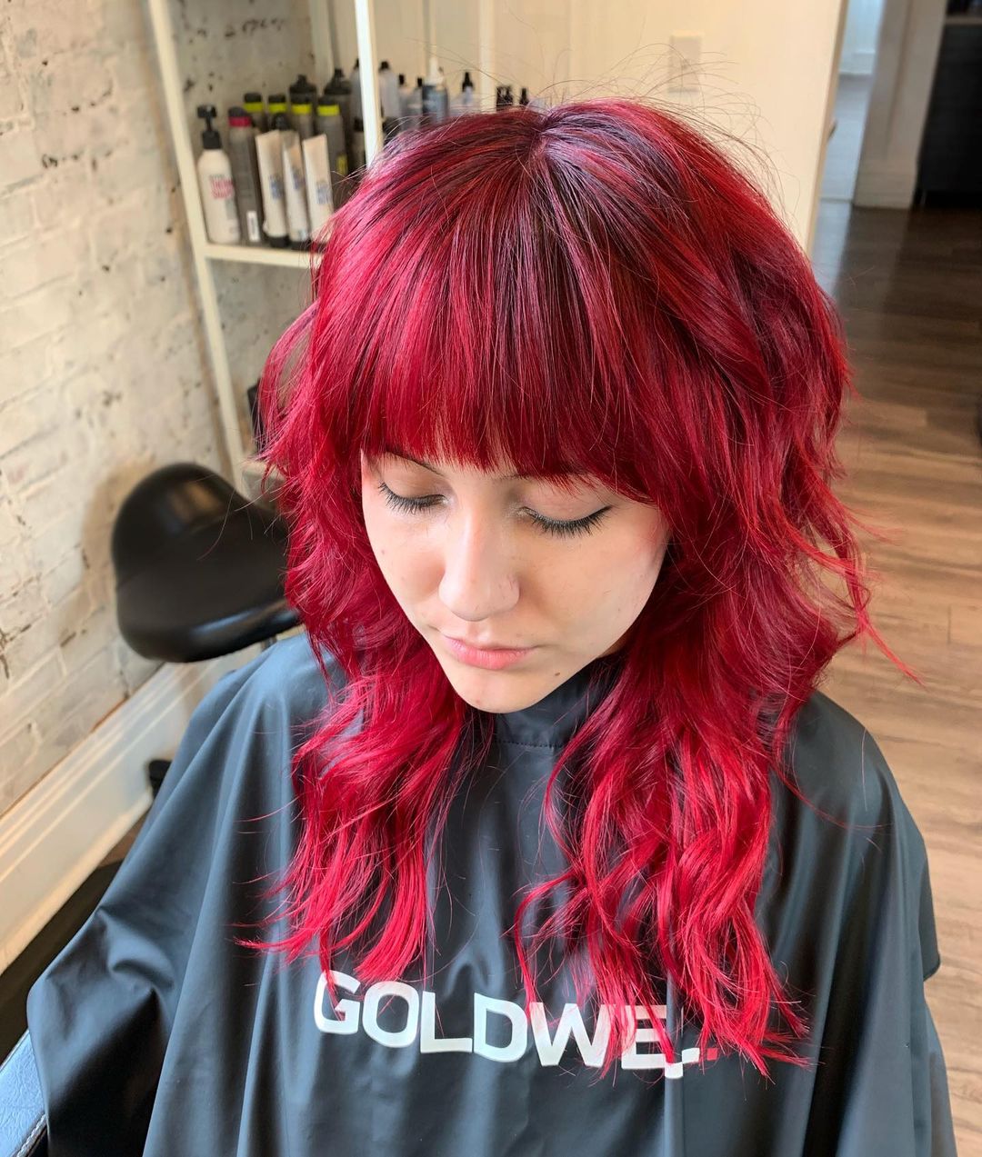 This hot, fiery red look will work so well on younger women who enjoy showing off and looking stylish. But honestly, this wolf cut is amazing for any age group!