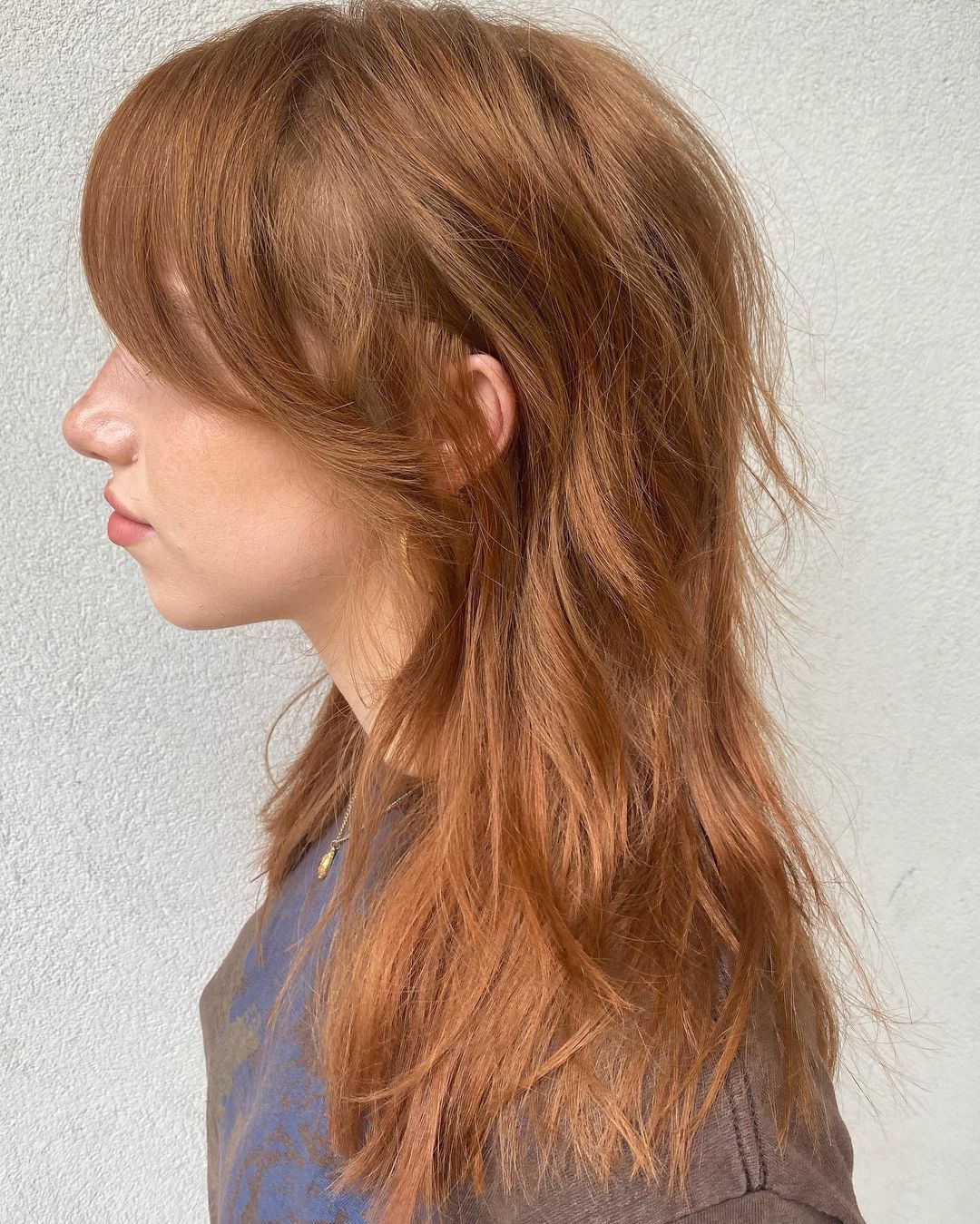 If you’re a fan of hot orange colors and you love feminine ideas, you’re definitely going to like this longer wolf hairstyle. It’s so pretty!