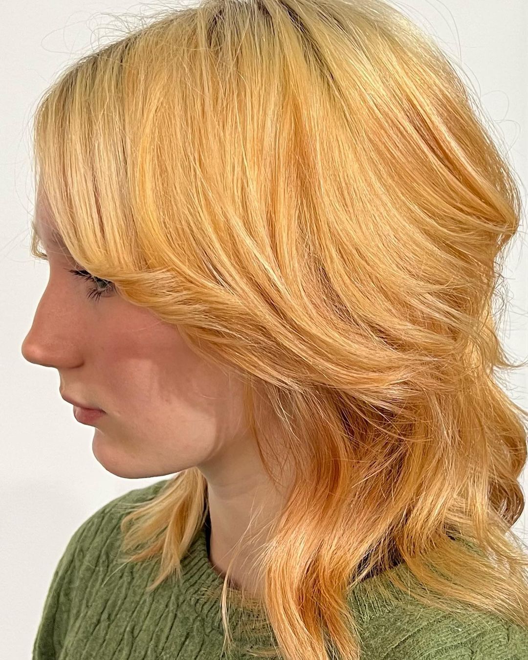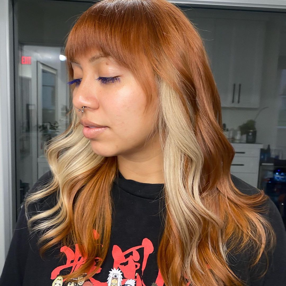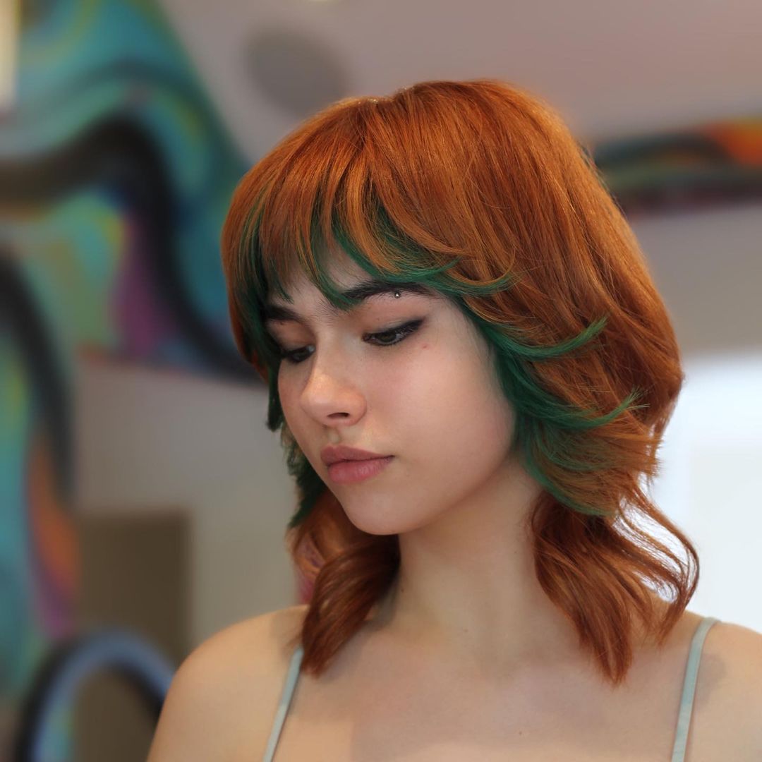 I know orange with a pop of blonde is an unusual color choice, but I think it will work so well with a wolf haircut! It’s such a unique combination.