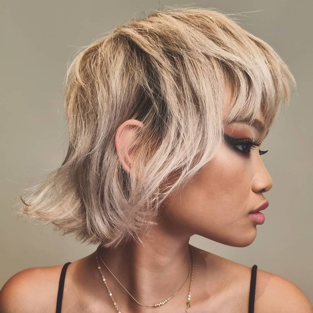 This is the ultimate bright blonde wolf haircut. It’s an absolute go-to for girls who love to stand out and attract some looks!