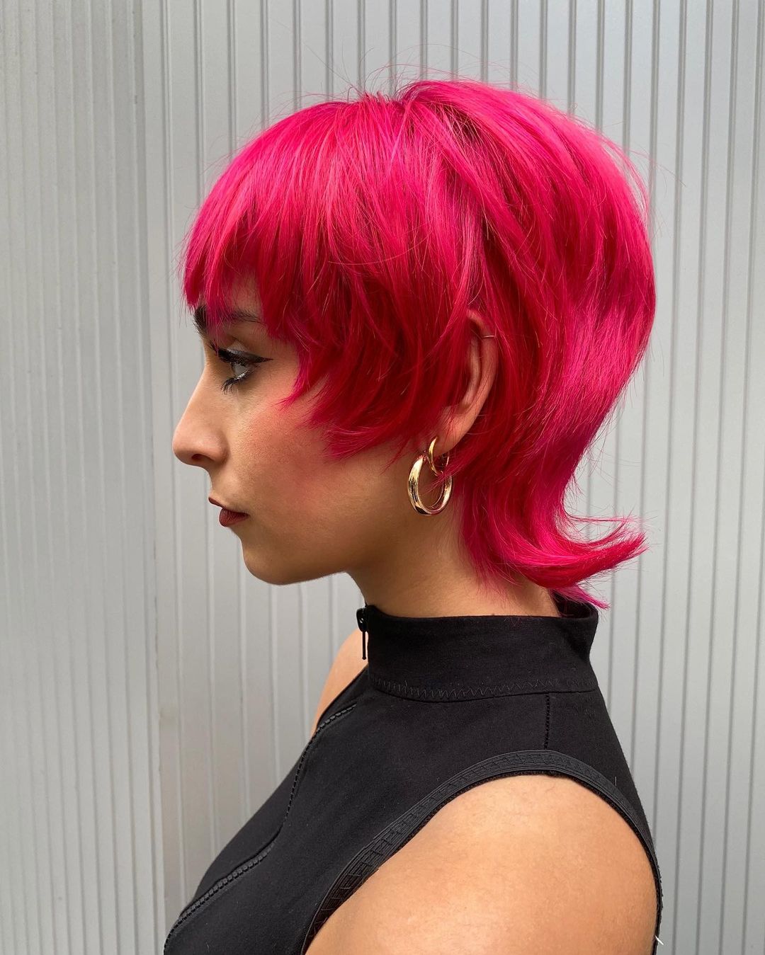 1. Hot Pink Short Wolf Cut