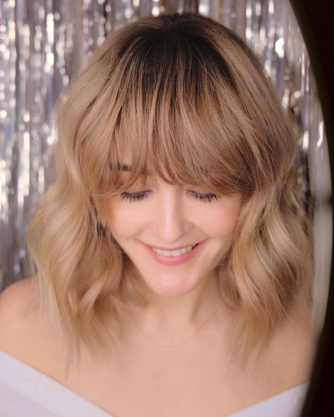 If you have naturally curly or wavy hair, it will look so playful when you add some fringe bangs to the mix.