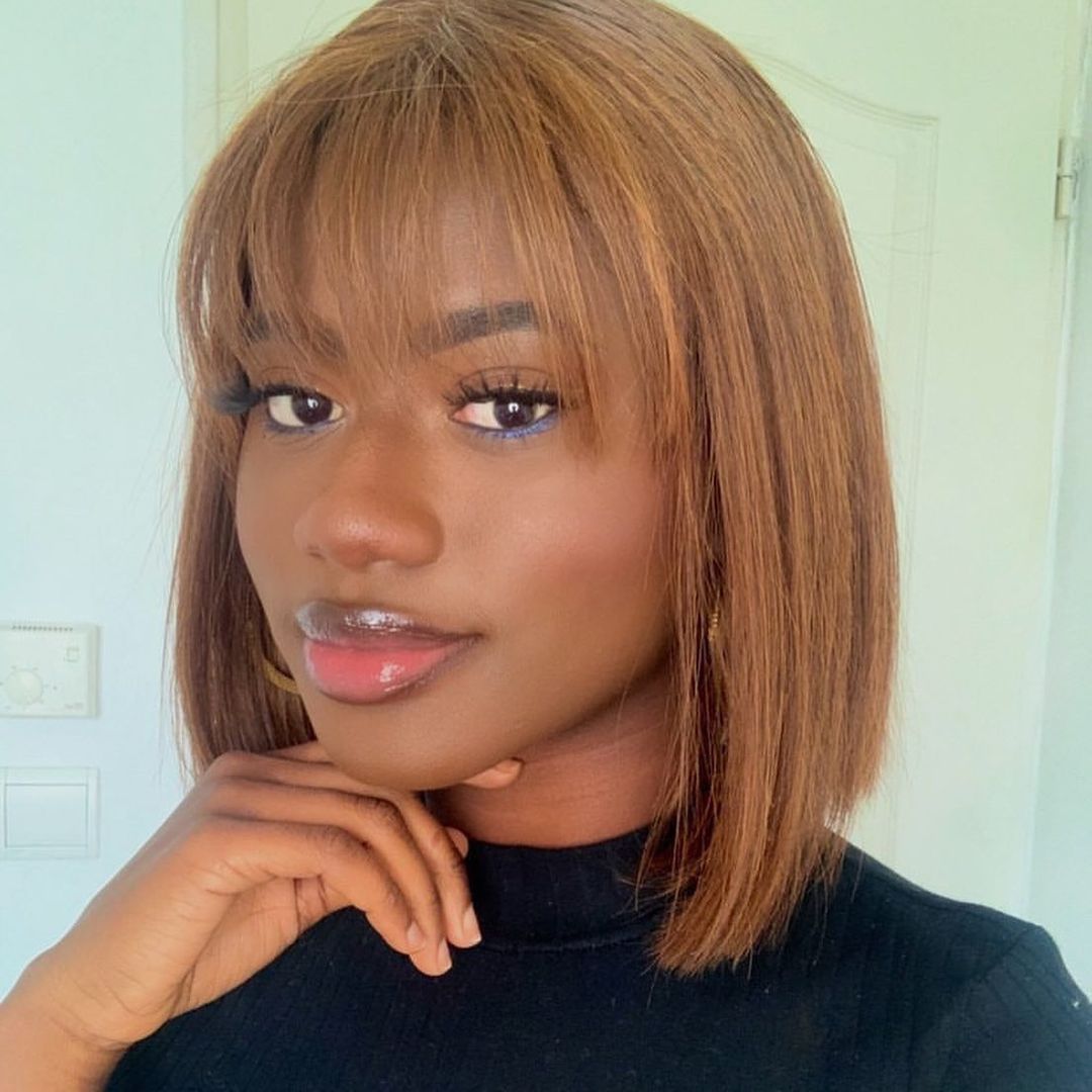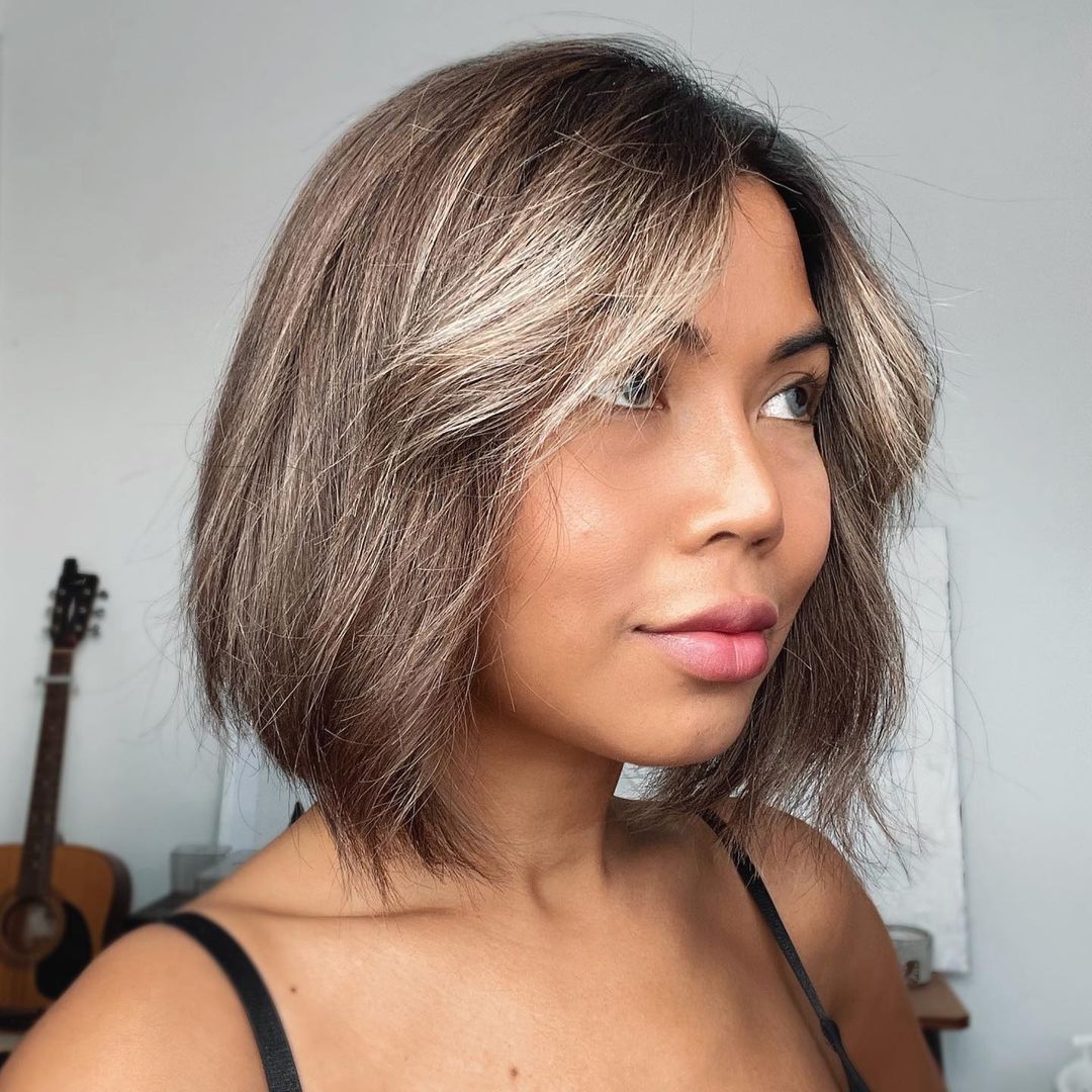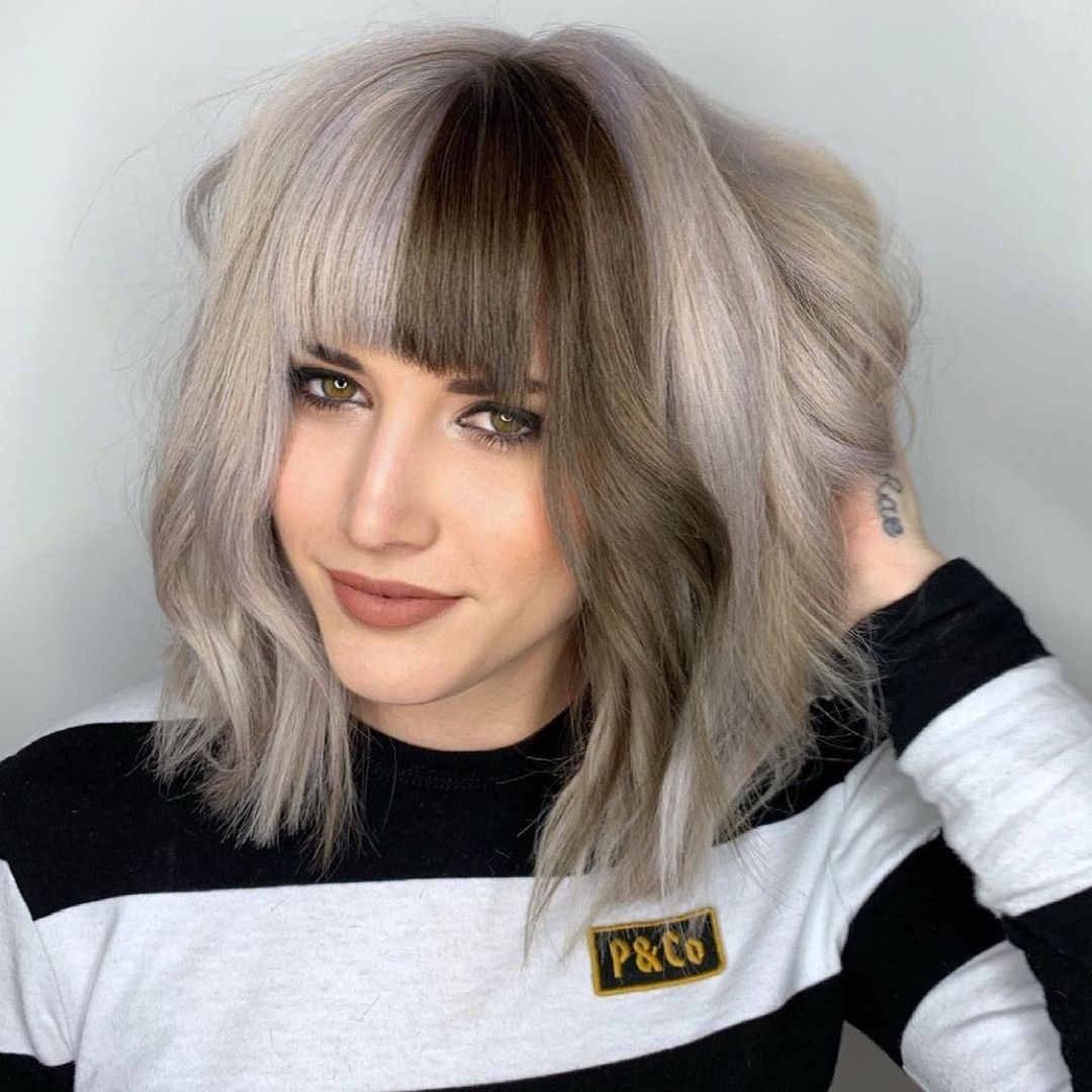 Blunt cuts are so high-end and fashionable right now. You can rock this color combination and bang size with complete confidence!
