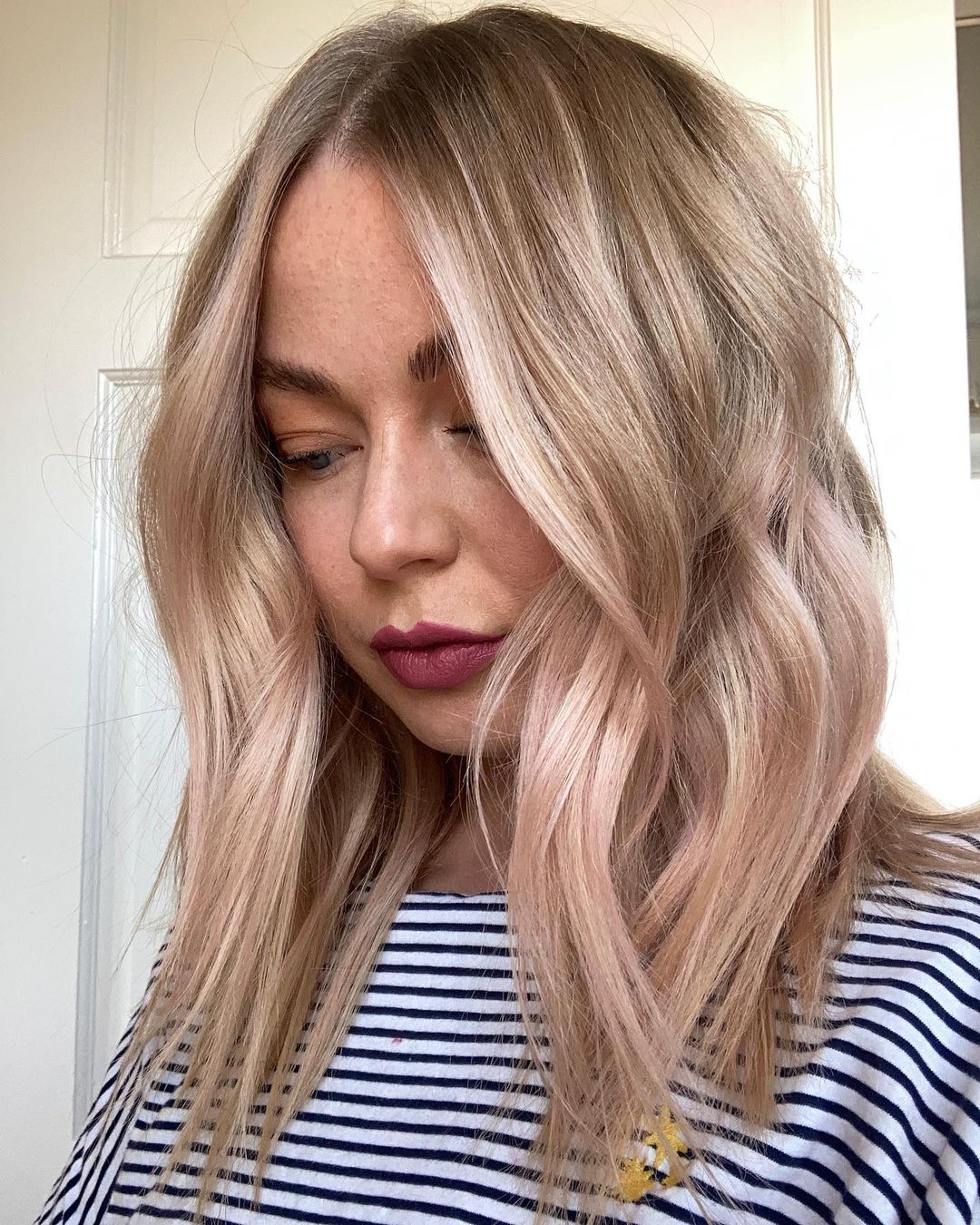 An unusual color combination paired with shaggy bangs like these will make your forehead practically seamless! I love it.