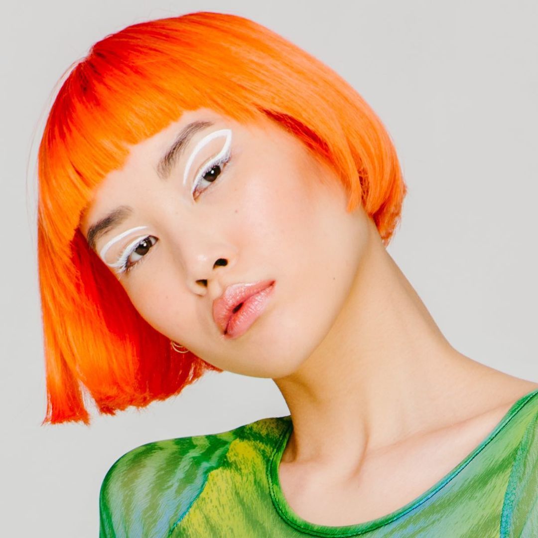 This hot orange color and short fringe bangs will be a perfect fit for younger women or teens who want to hide their big forehead.