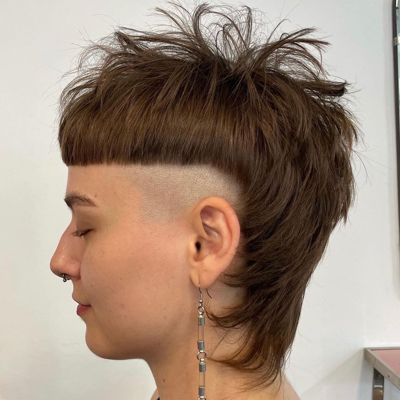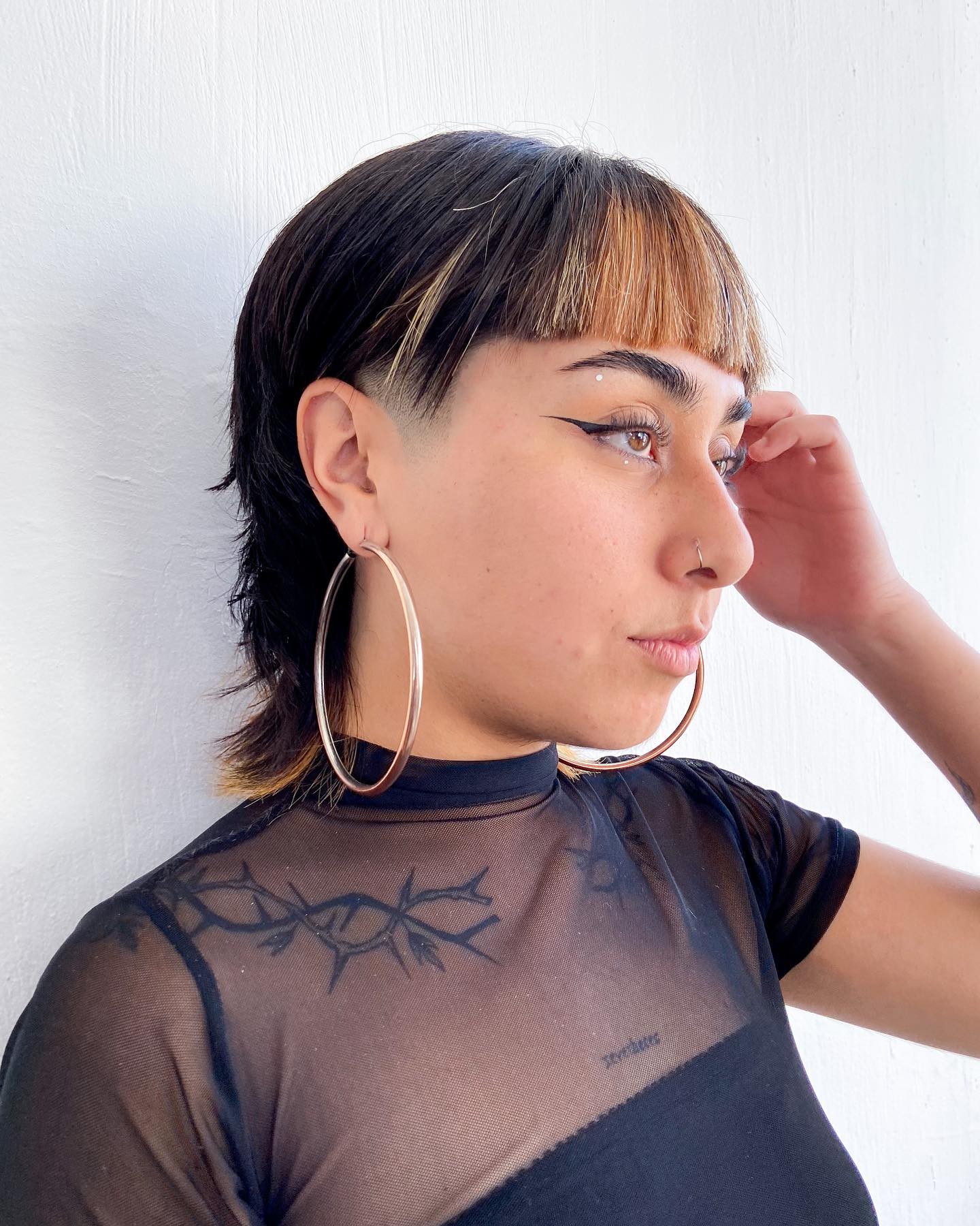 Chopped bangs and a mullet with a great set of defined bangs are just doing it for me. This look is so feisty and it’s surprisingly low-maintenance. If you want a hairdo that is all about getting noticed, this one’s for you. It’s a total showstopper, honestly.
