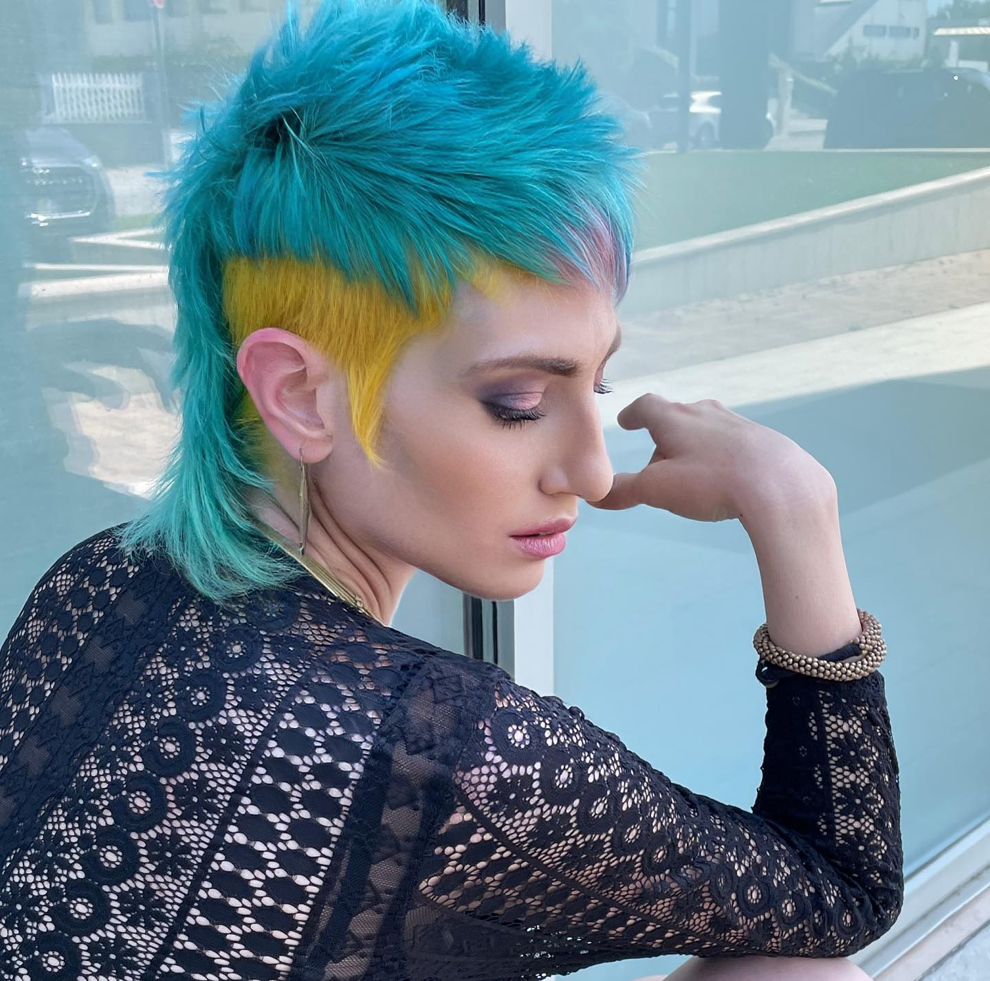 Go for this messy mullet with shaved sides by choosing two of your favorite colors. You can have fun with this look, and it’s a great option for a sleek finish.