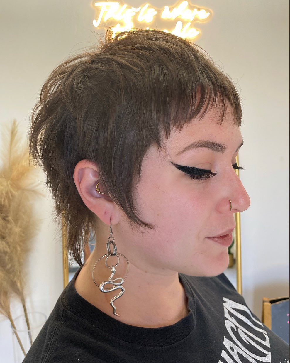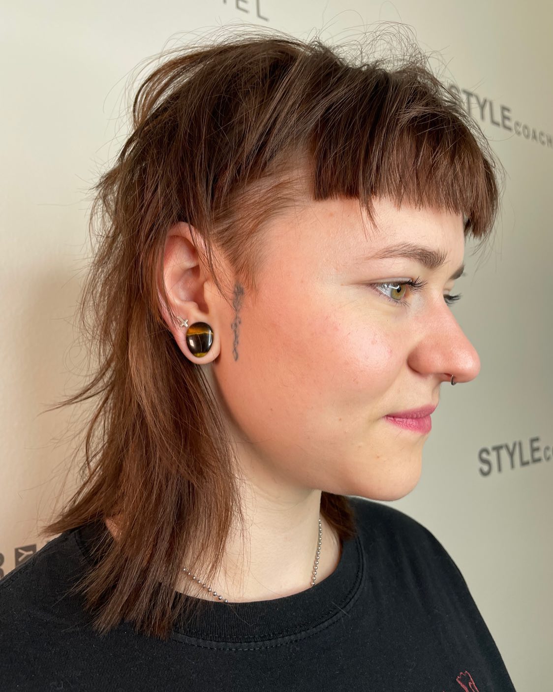 I feel like you can never go wrong with a classic brown mullet like this one. It’s an easy, everyday cut that works for any age. For those days when you need to be out the door fast, this is a look that’s both effortless and functional. A little brush-out is all it takes to get this sleek, neat look.