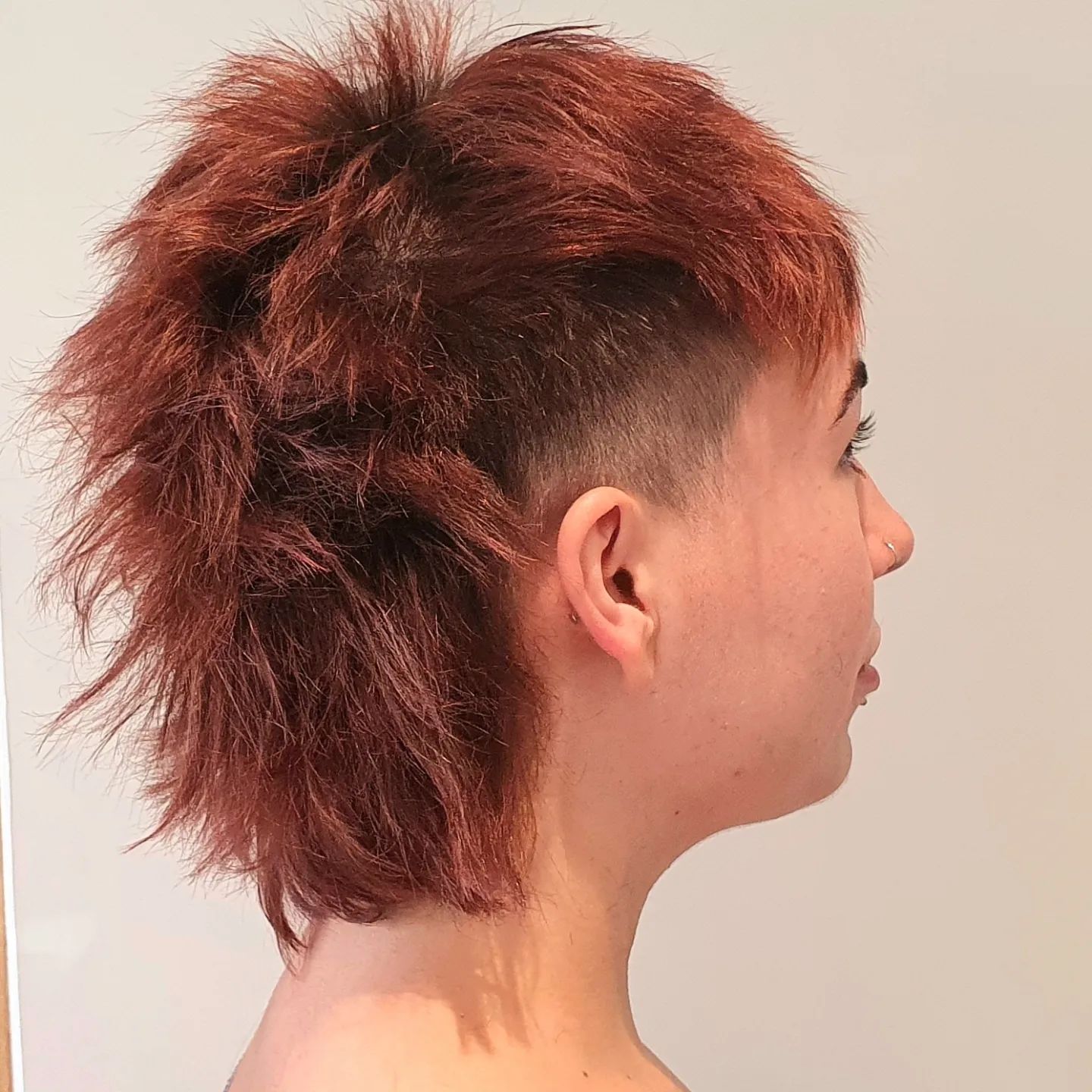 Want to switch things up with something cool and edgy? This bright red mullet with shaved-off sides is it. This look is perfect for the fall season and feels like such a fashion statement.