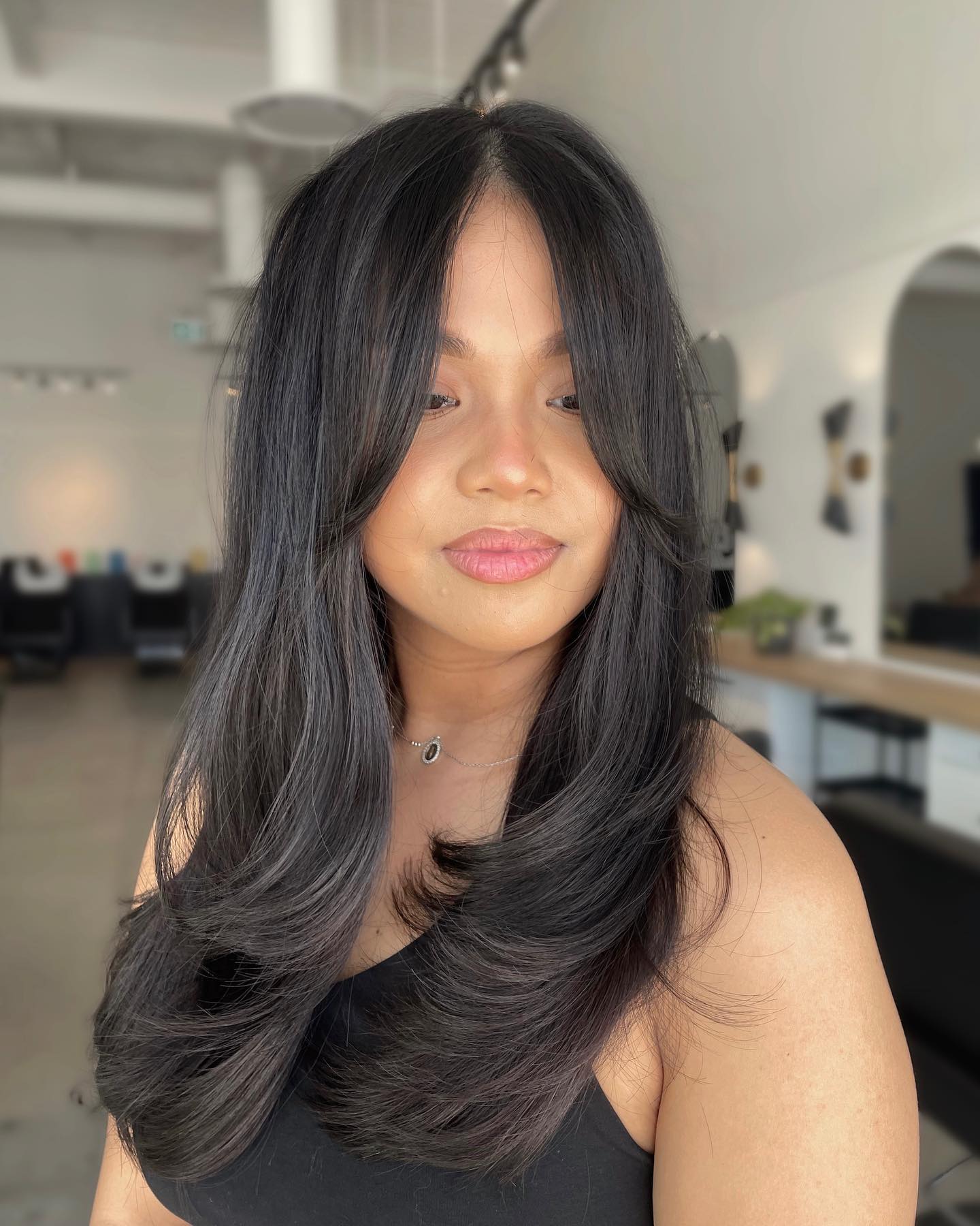 2. Black Hair With Layers 90s Blowout