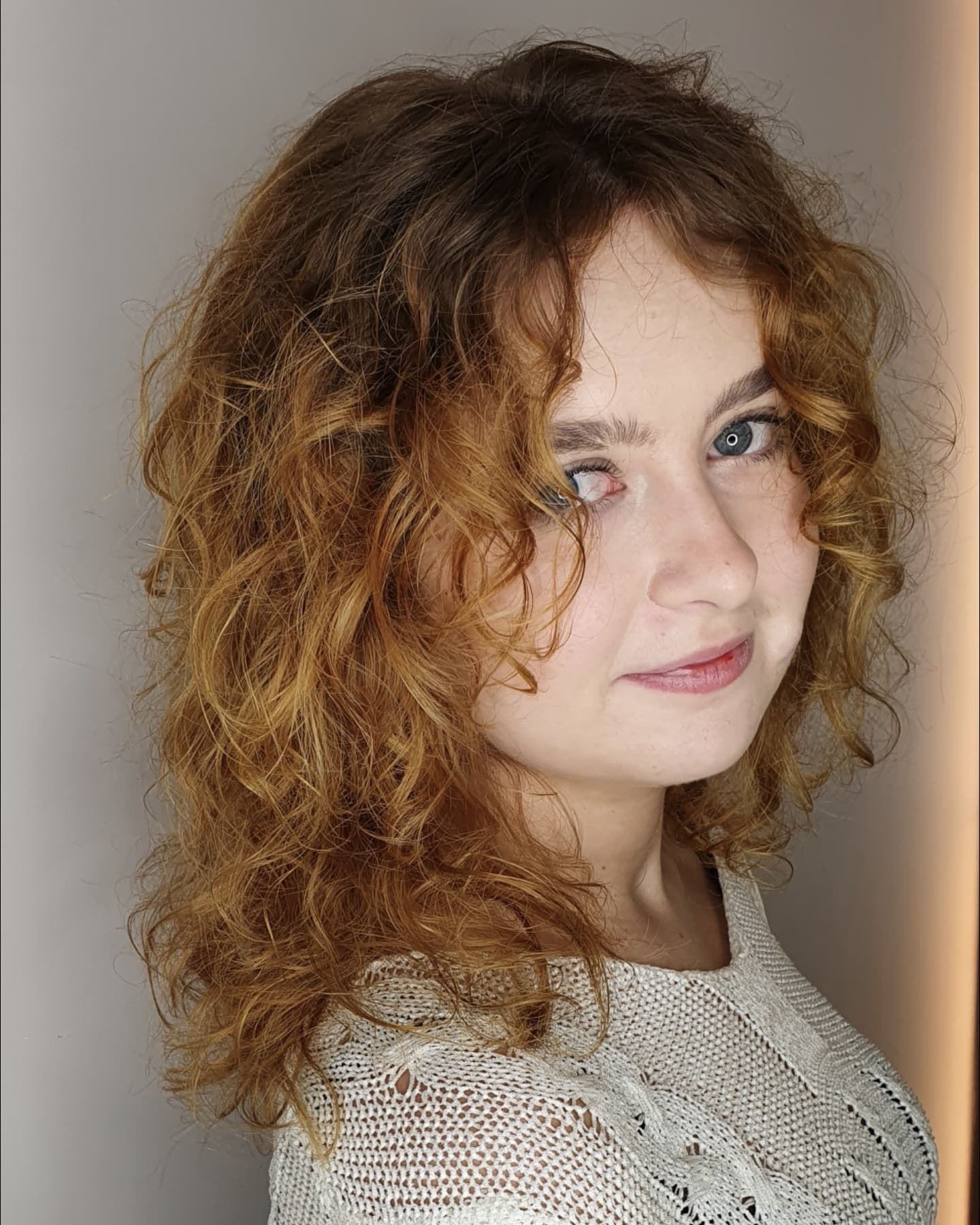 Having curly light brown or orange hair is a statement that you can so easily make and embrace. This look is an amazing fit for teens, and it’s also perfect for party girls who want to stand out.