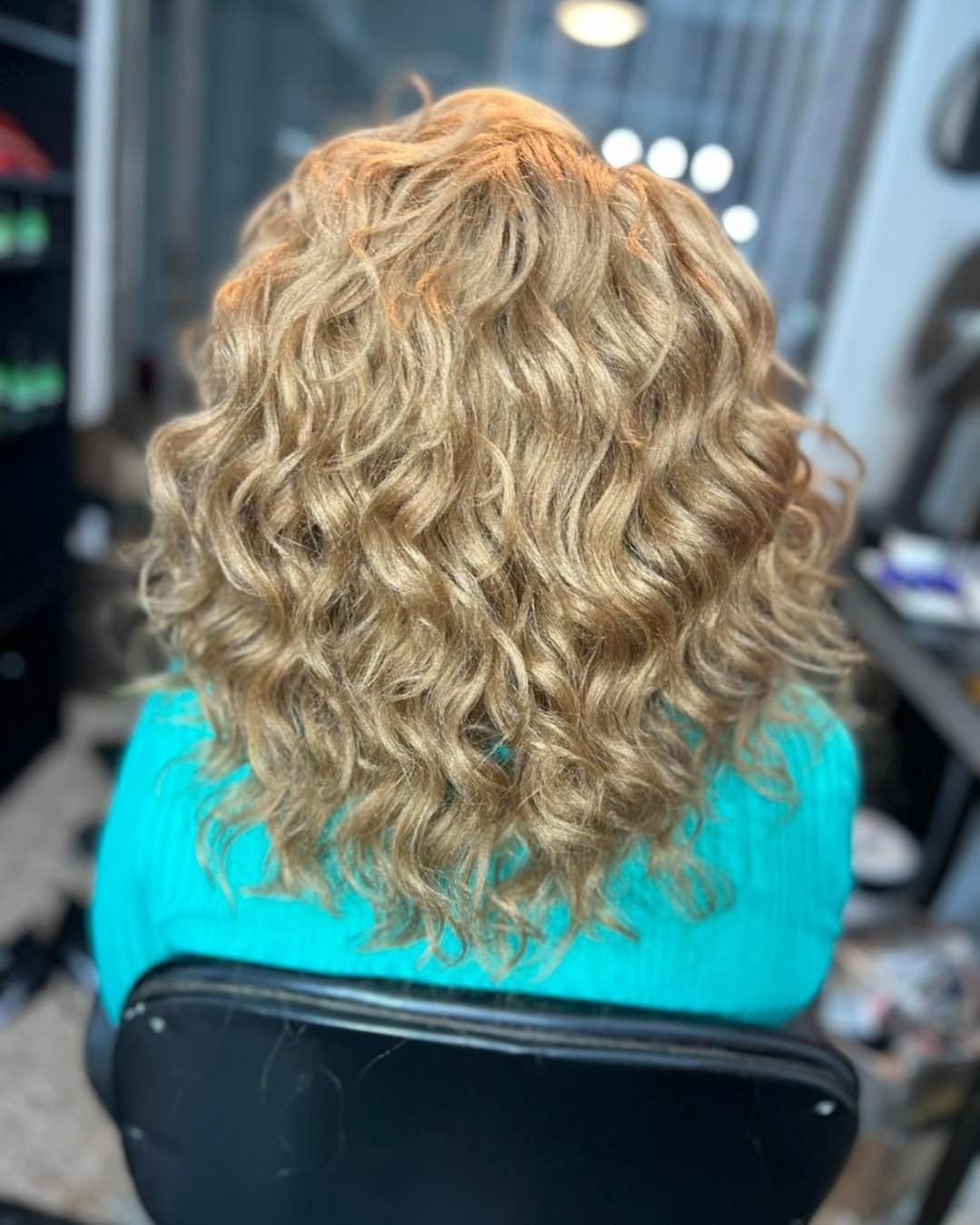 You should absolutely go for this bright blonde curly hairdo. It’s a style that would be perfect for any event!