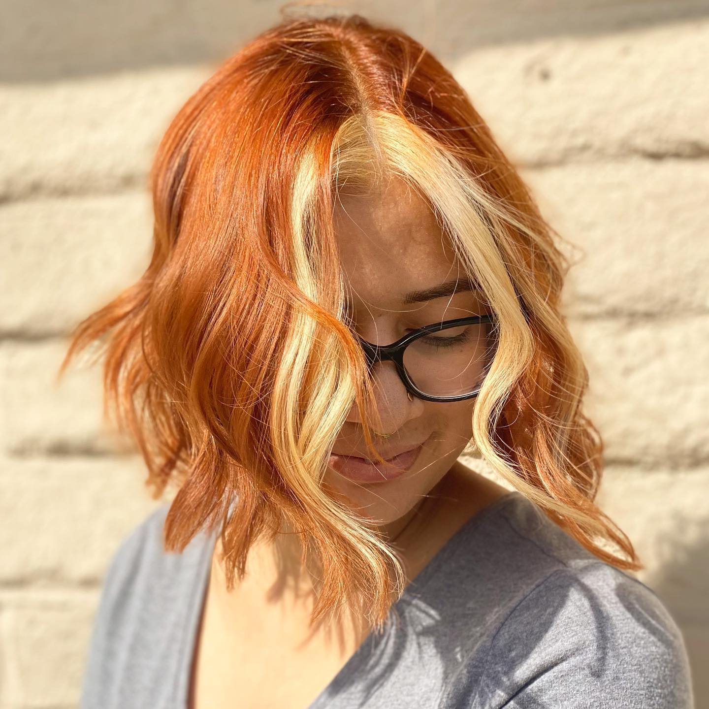 A copper base for your hair is already such a great starting point. But when you add in some cool, light blonde highlights just at the front, you get some incredible dimension for your shoulder-length haircut.