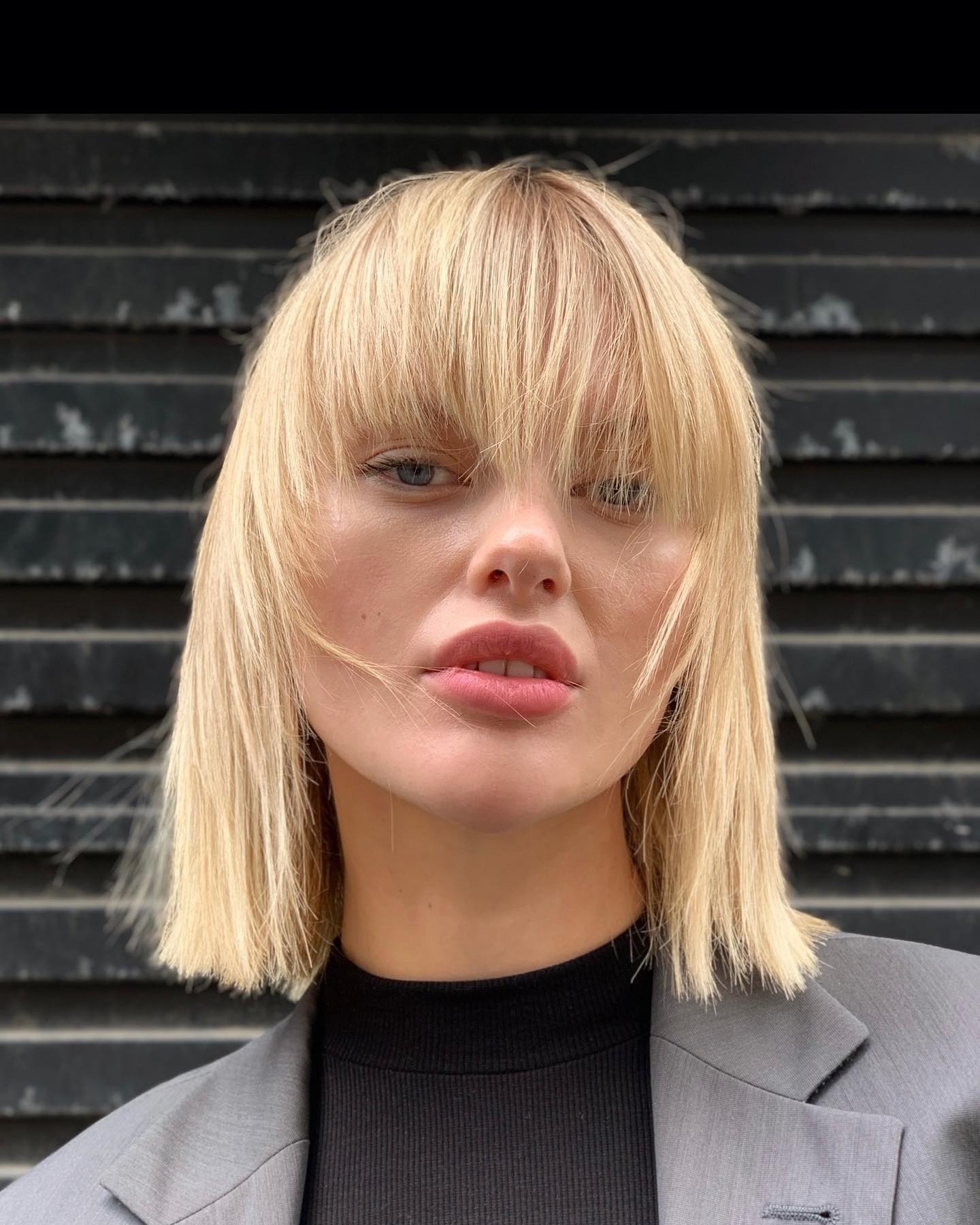 21. Blonde Hair With Bangs Shoulder Length Hair