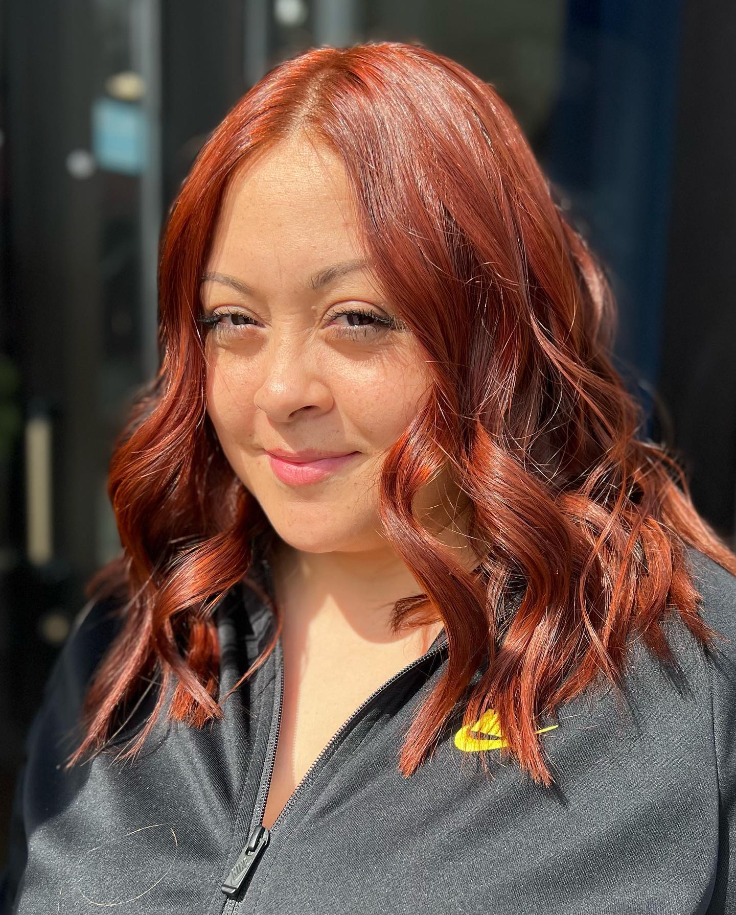 I love how bright and vibrant this is. This auburn hairdo is for women who like to make bold statements.