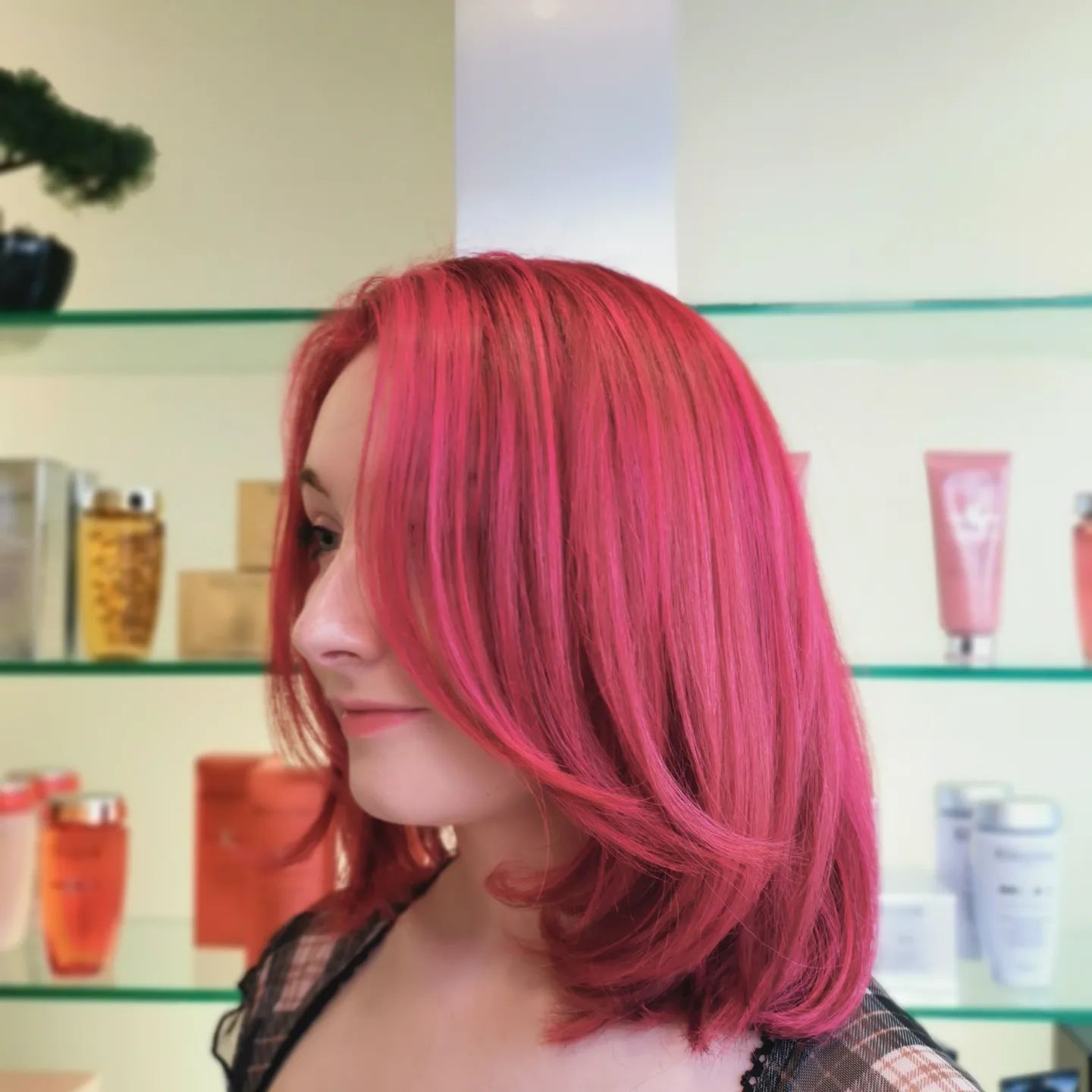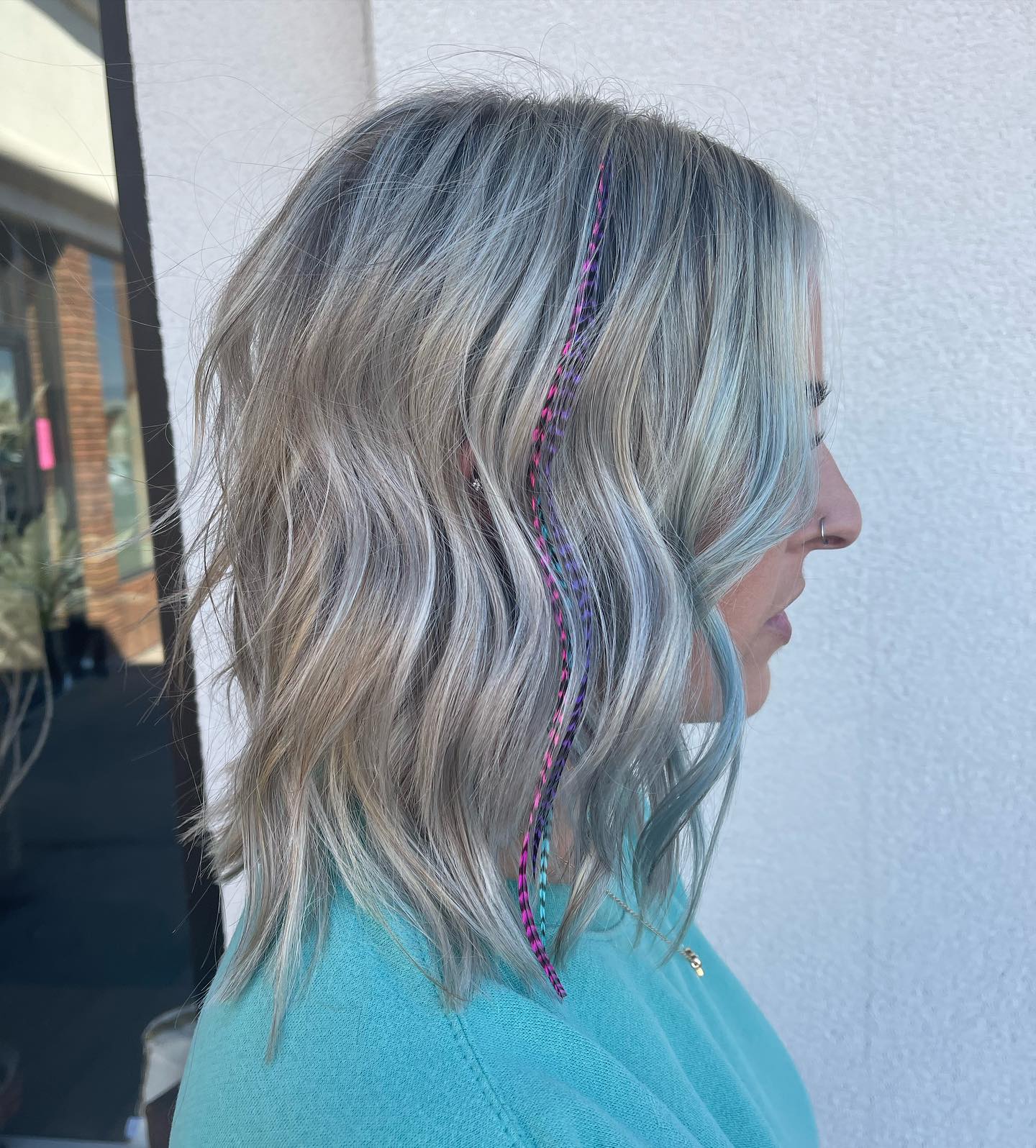 If you’re hoping for a hairstyle that is easy to wear no matter your age and you also love some pops of color, this wispy, shoulder-length straight bob is definitely for you.