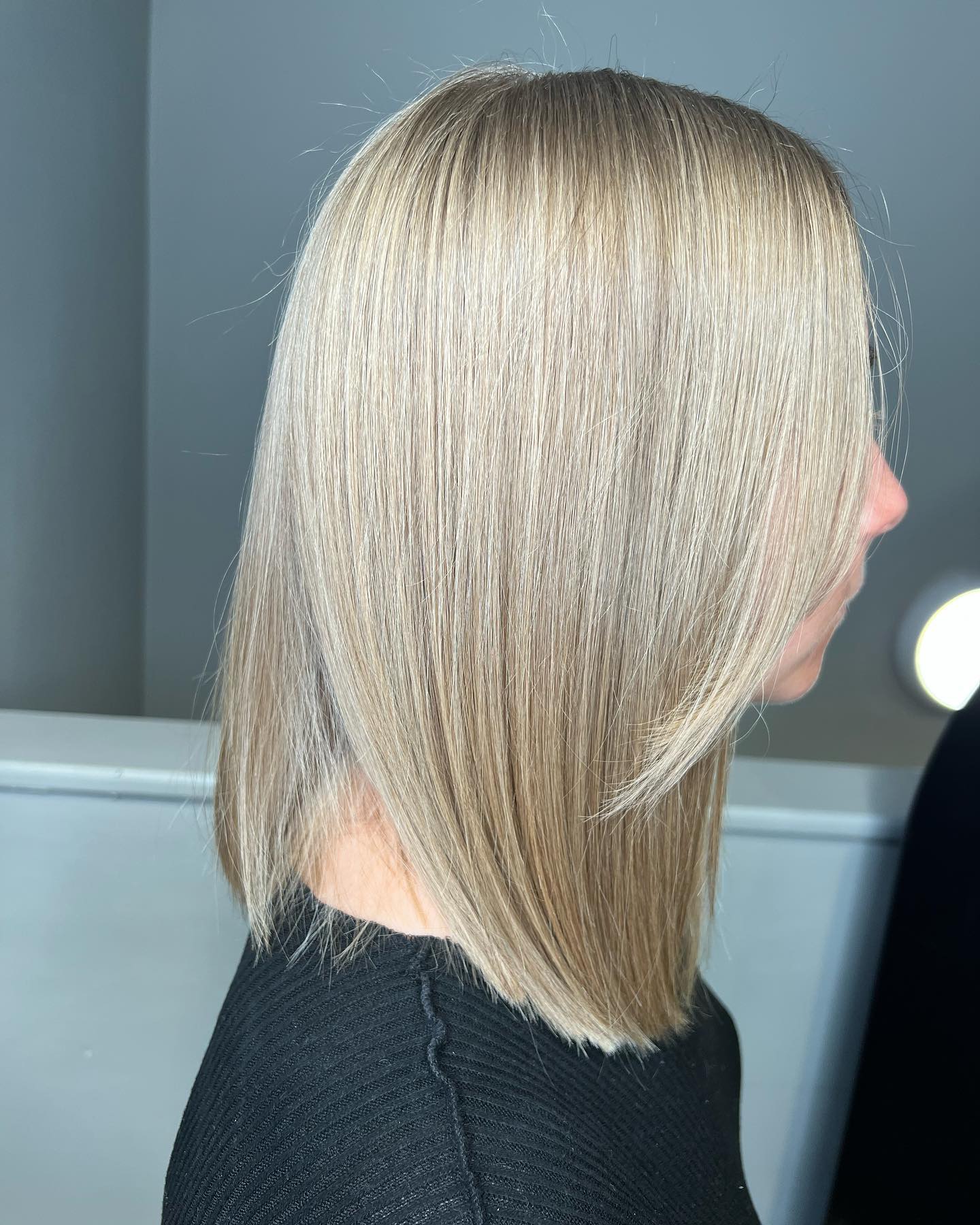 Here we have a simple shoulder-length blonde bob that is just so perfect for everyday wear.