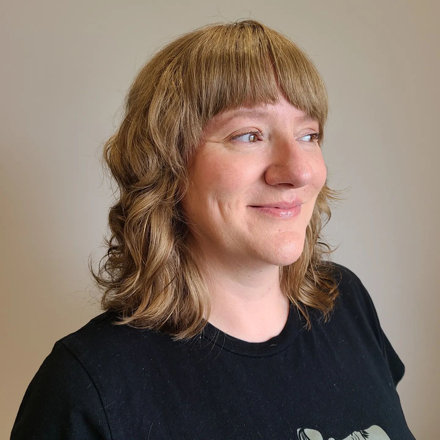 A voluminous, wavy blonde look with these curtain bangs is both cute and effortless. Just style your hair with your favorite curl cream to get some definition.