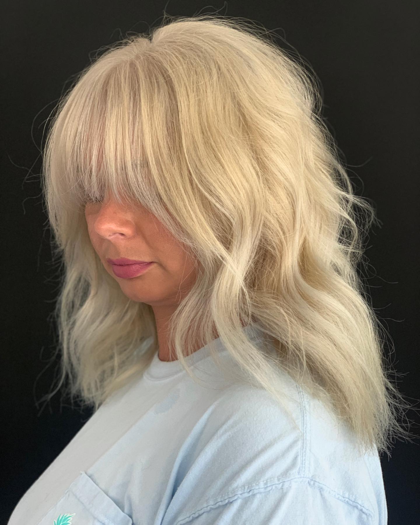 I love this cool, wispy blonde look. It’s perfect for blondes who can handle the maintenance of a bleached style. Just a heads up, this cut needs to be colored every 6-7 weeks to keep it looking amazing.