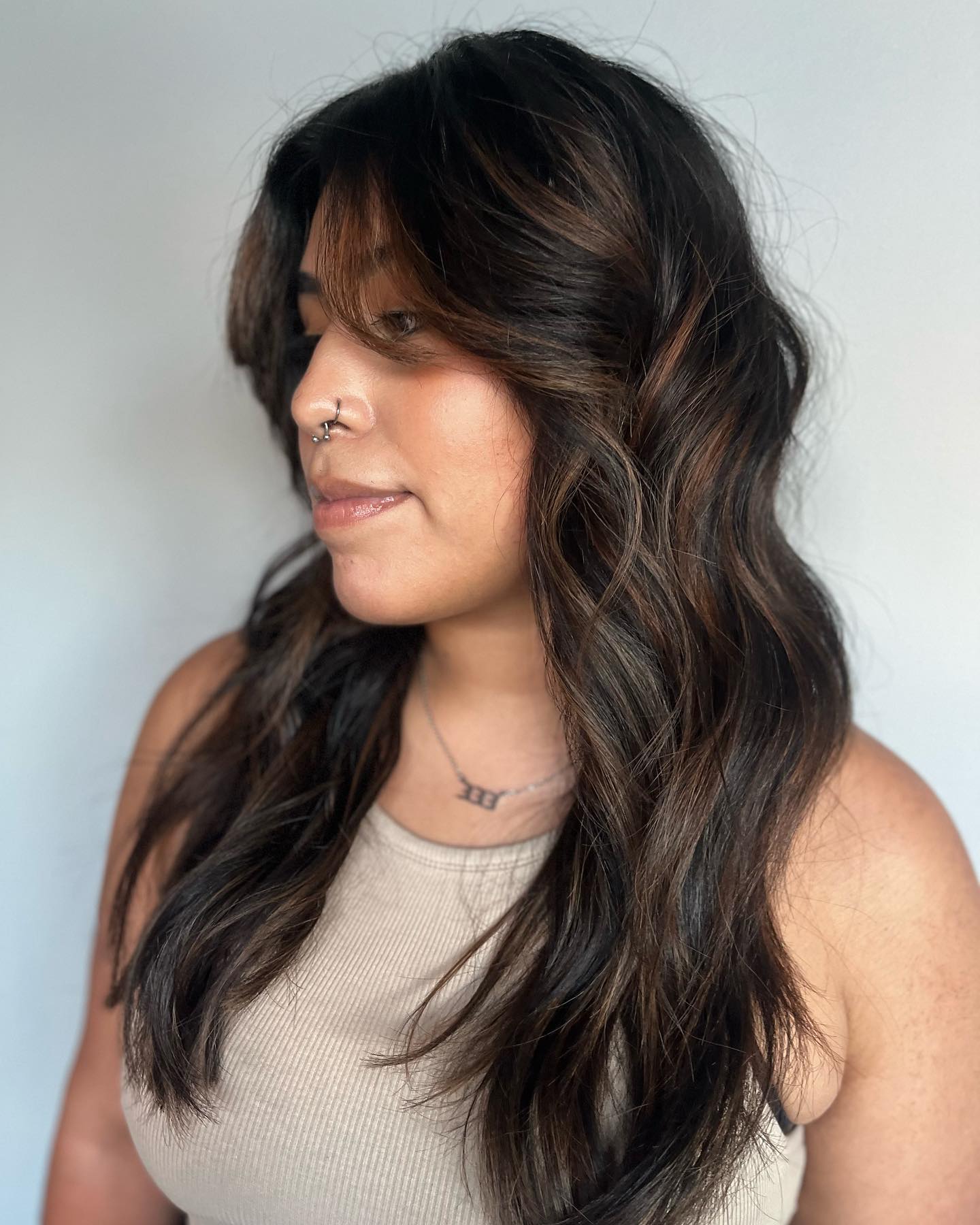 Balayage or ombré highlights with wispy curtain bangs are a total dream team and a must-try duo. Flaunt this beautiful style knowing that it’s elegant and perfect for any occasion.