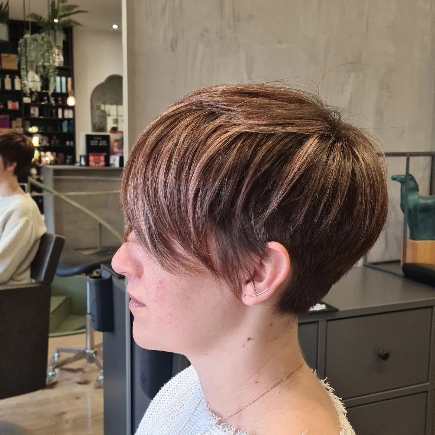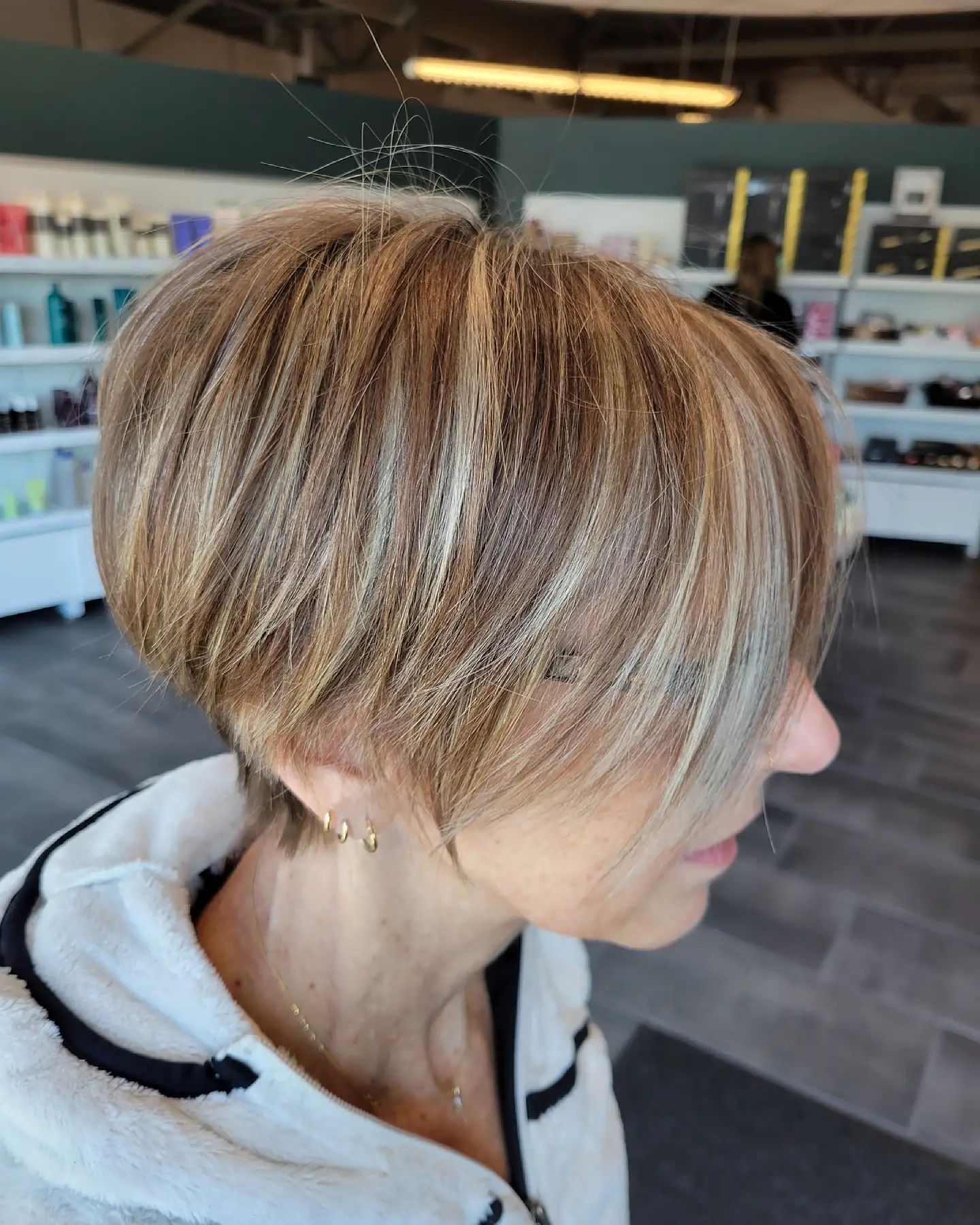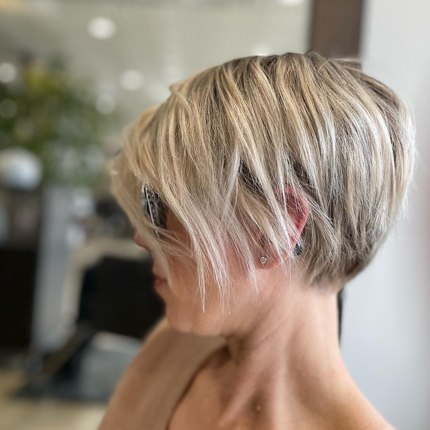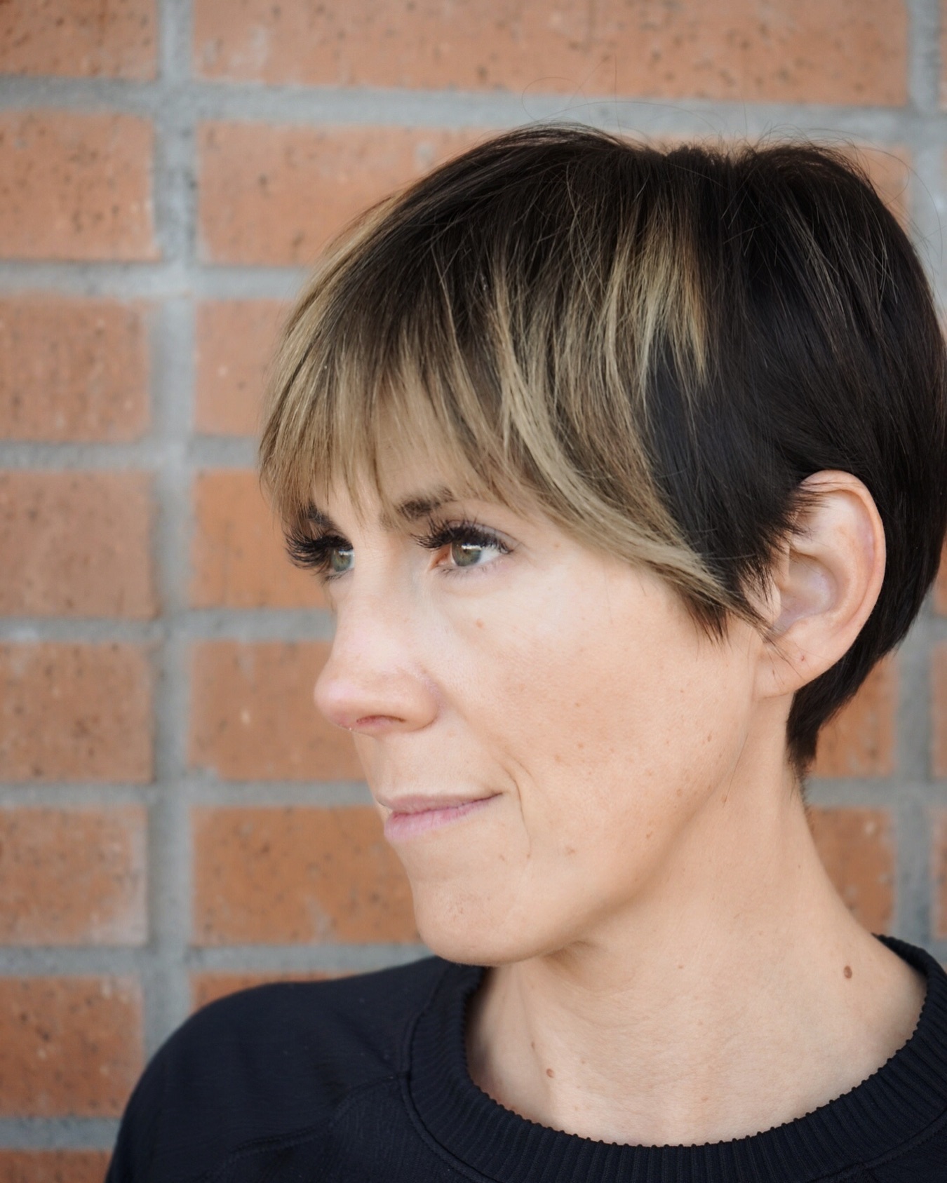 Want to add a little something special to your layered pixie? You have to try adding highlights! This look is especially great for women in their forties. I am obsessed with how the layers and highlights play off each other to create a dynamic look.