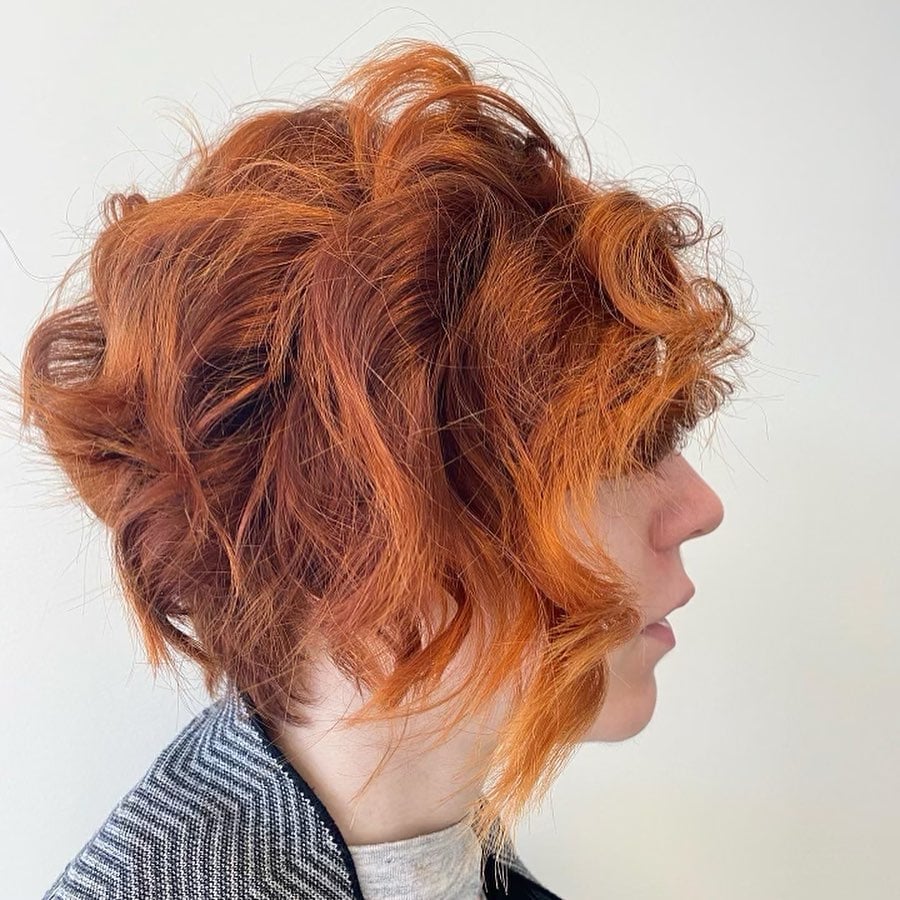 For younger women, an orange layered pixie is the ultimate vibe. If you’re a partyholic who is drawn to bold colors, this cut is a definite must-try.